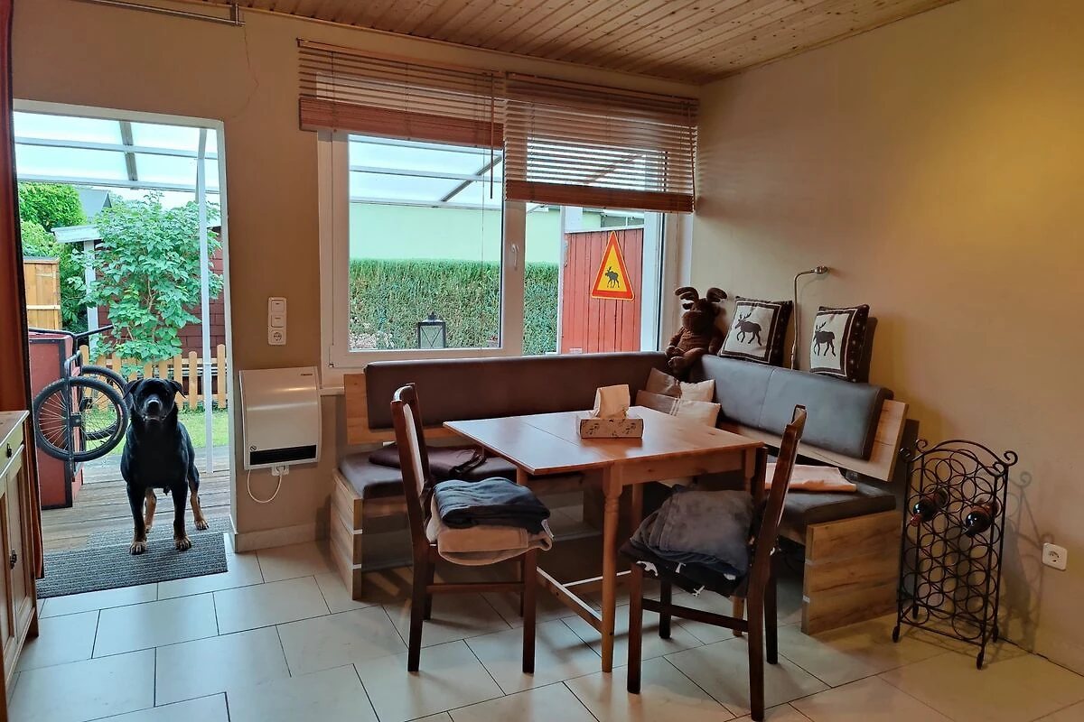 Nettes Ferienhaus in einem Ferienhausgebiet. Der Ferienort liegt direkt am Stettiner Haff.