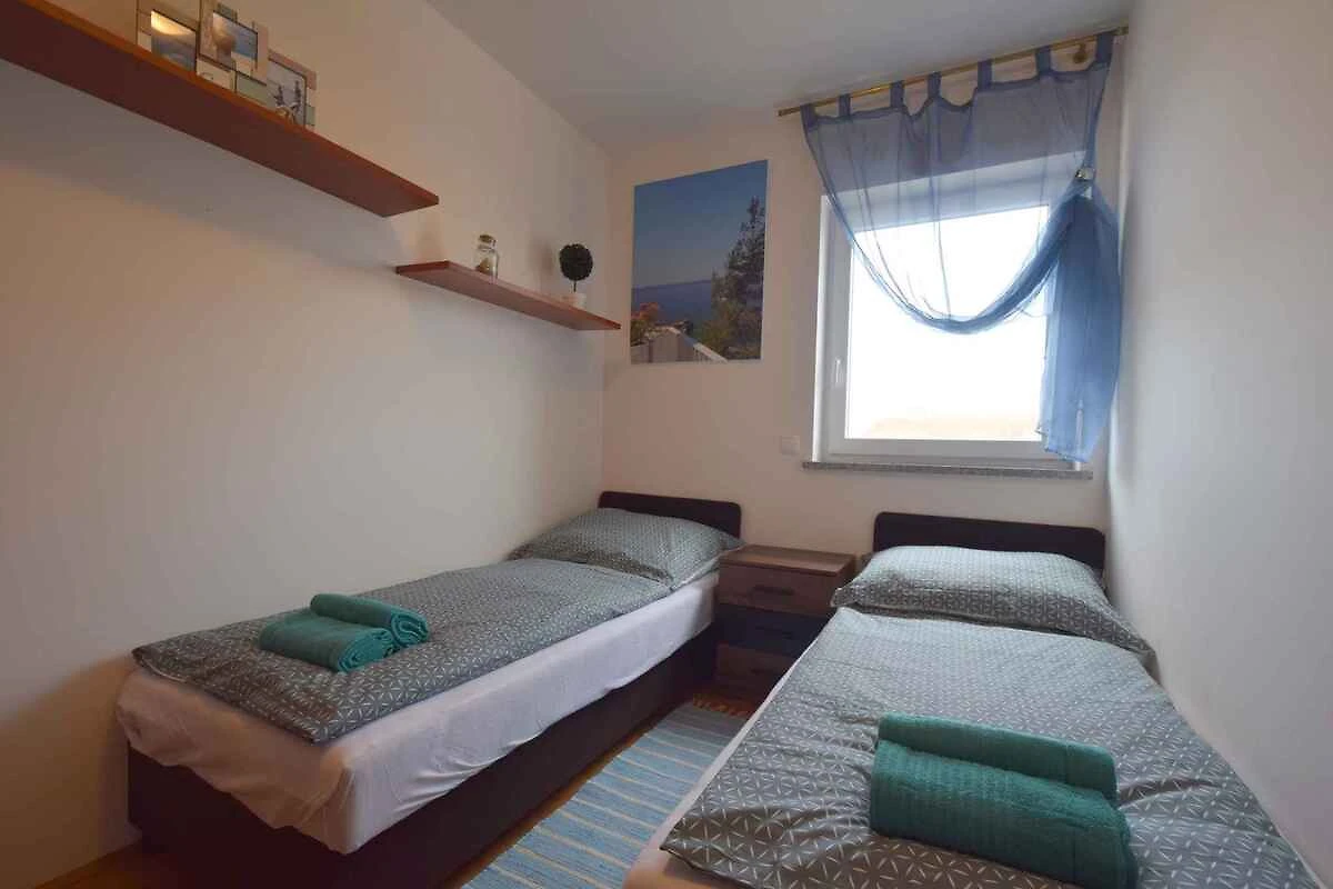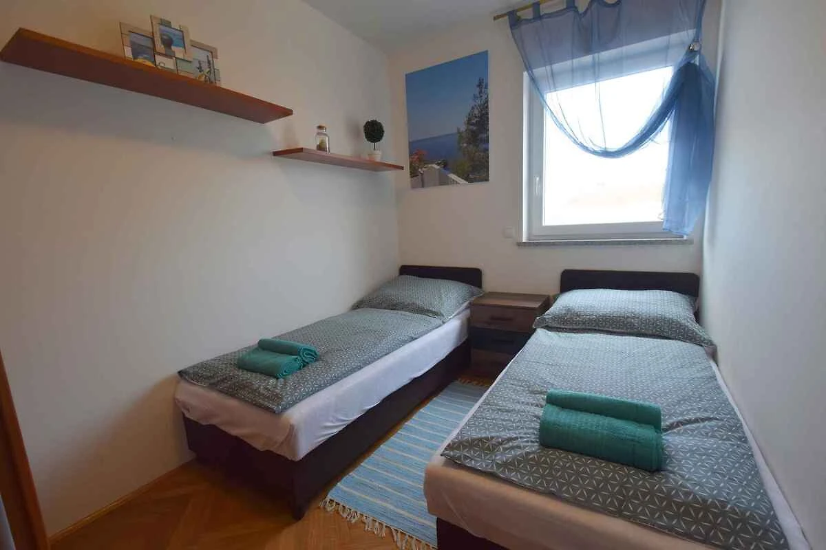 Einkauf 100 m, Restaurant 100 m, Ortszentrum 150 m. Malinska: Diskothek, Apotheke, Bank jeweils 400 m. Arzt 650 m. Flughafen in Omišalj 11 km. Im Sommer: Adriatic Sea 250 m in Malinska (Strand 350 m in Rupa mit Kies, Steinen, Felsen und Badeplateaus).