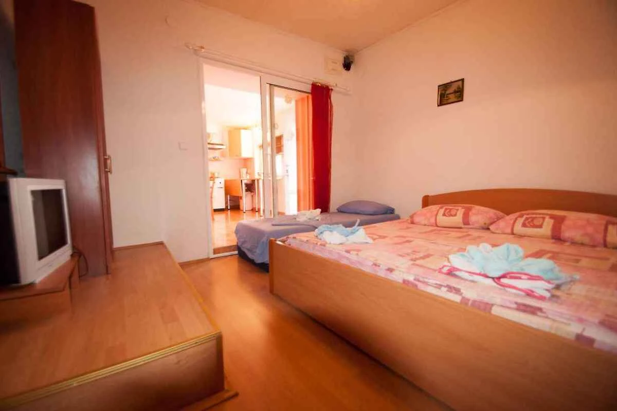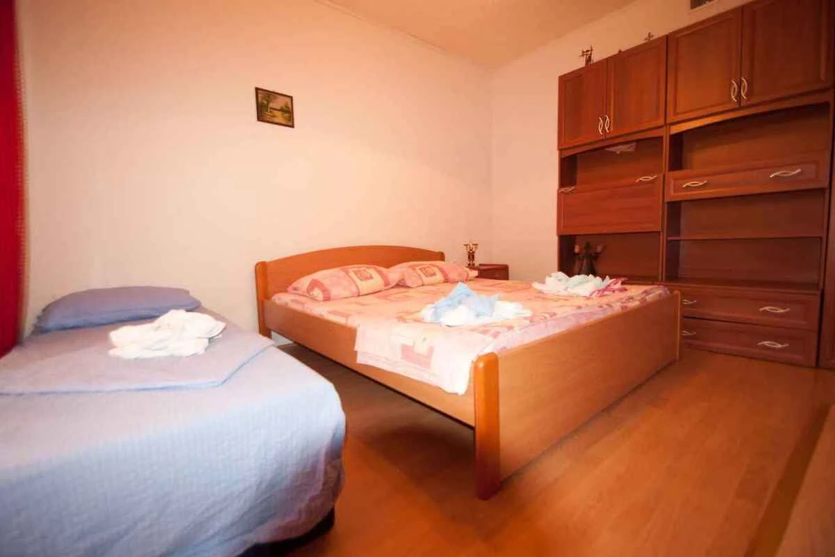 Vrbnik. Der Vermieter wohnt ständig im Haus, nutzt jedoch einen separaten Eingang. Die Zufahrt erfolgt über eine Nebenstrasse (asphaltiert). Parkplatz (für 1 Pkw) auf der Strasse vor dem Haus und einem Parkplatz im Ort (Entfernung 200 m).