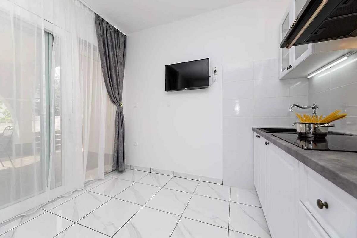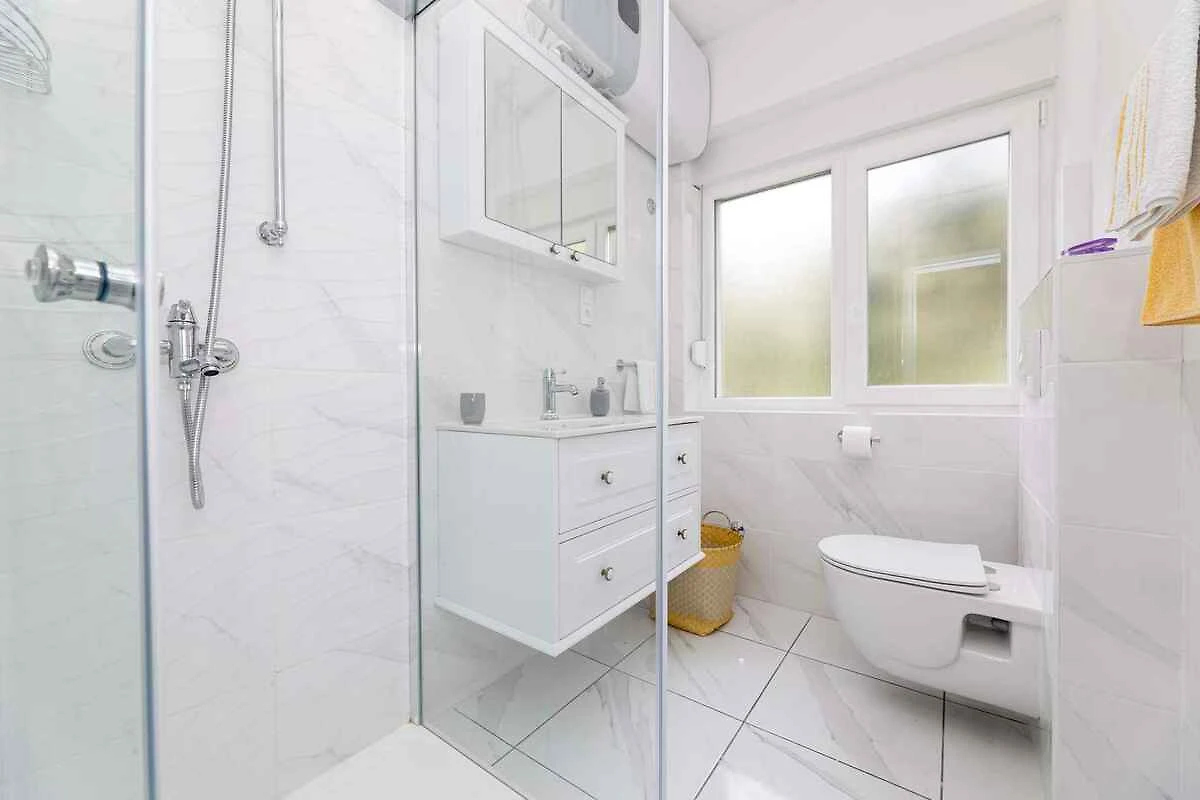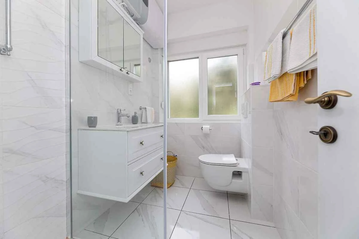 Einkauf 500 m, Restaurant 250 m, Ortszentrum 500 m. Bahnhof in Fiume 60 km. Arzt, Bank jeweils 12 km in Kkrk. Flughafen in Omišalj 30 km. Apotheke in Vrbnik 500 m. Im Sommer: Bademöglichkeit 350 m in Vrbnik (Strand 350 m in Vrbnik mit Kies, Felsen und Badeplateaus). Hundestrand in Risika 5 km. Tauchen in Vrbnik 350 m.