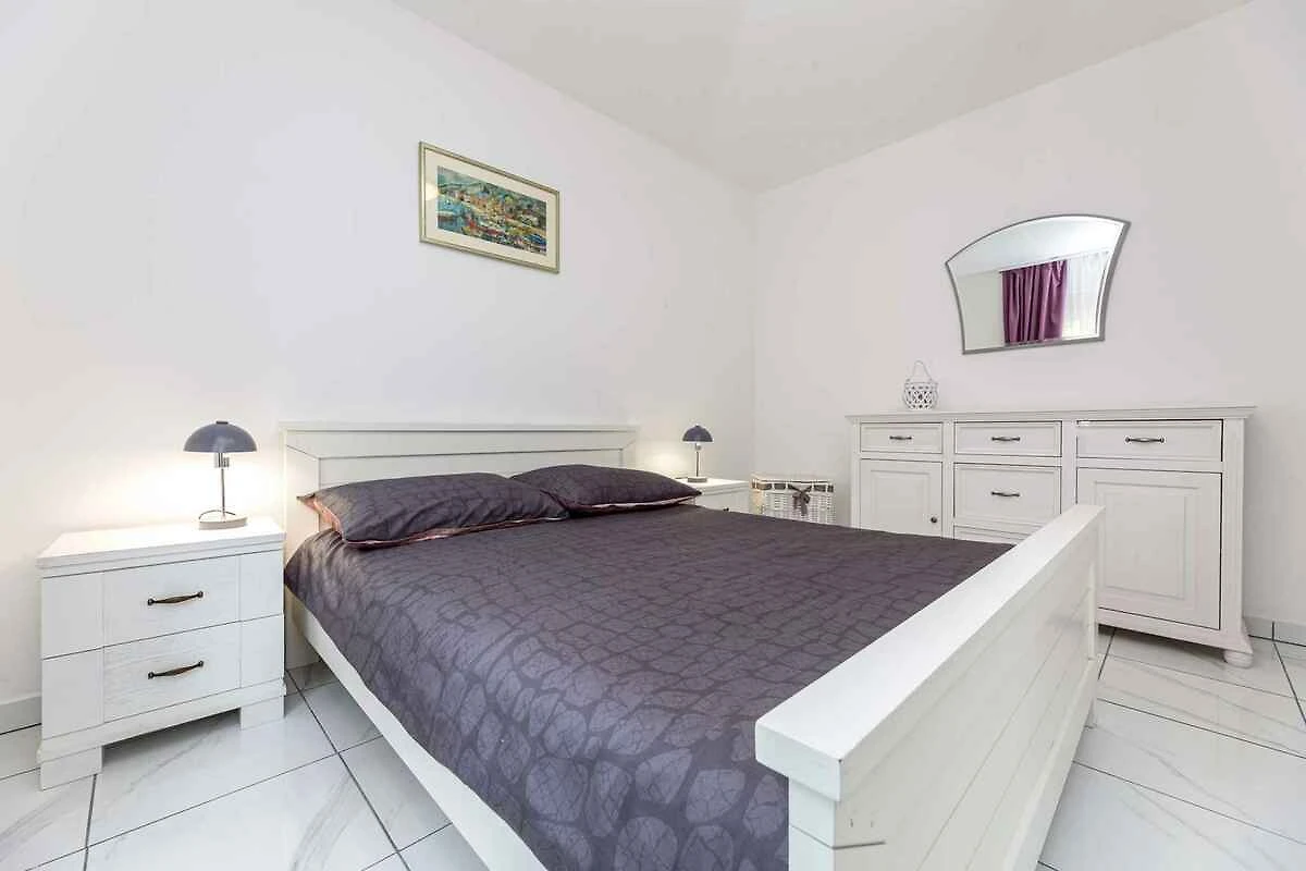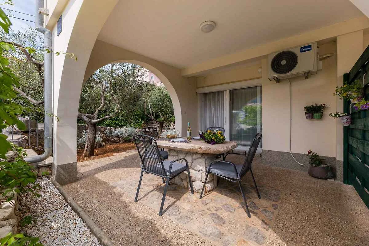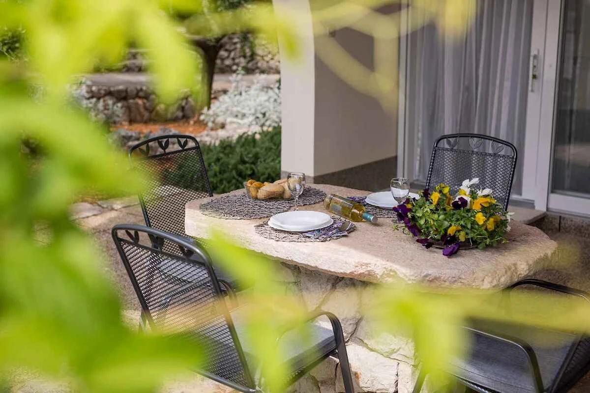 Vrbnik. Die Ferienwohnung befindet sich auf einem Grundstück mit Wiese, Blumen und Sträuchern. Der Vermieter wohnt ständig im Haus. Die Zufahrt erfolgt über eine Nebenstrasse (asphaltiert). Parkplatz (für 1 Pkw) auf dem Grundstück.