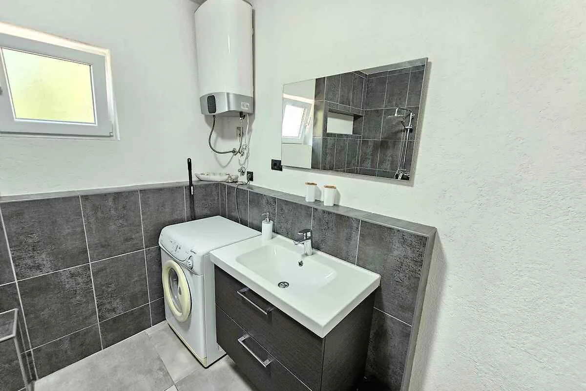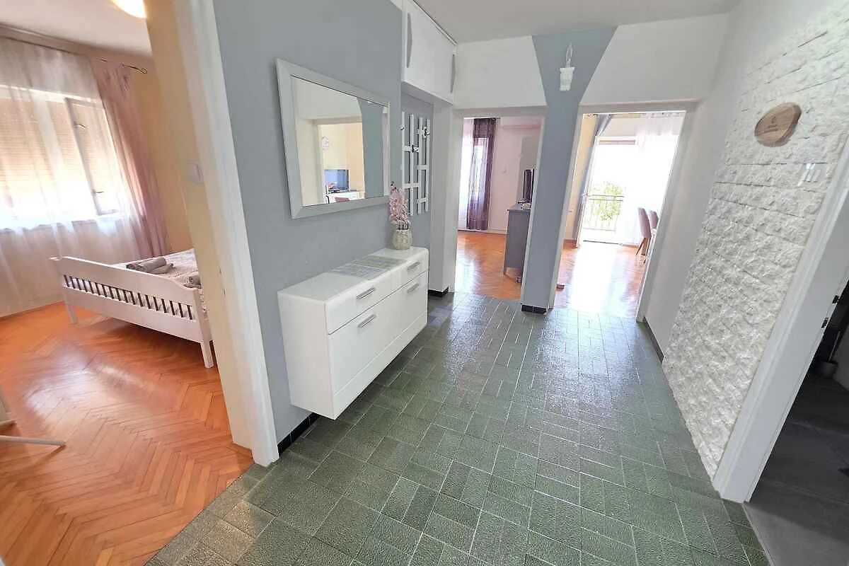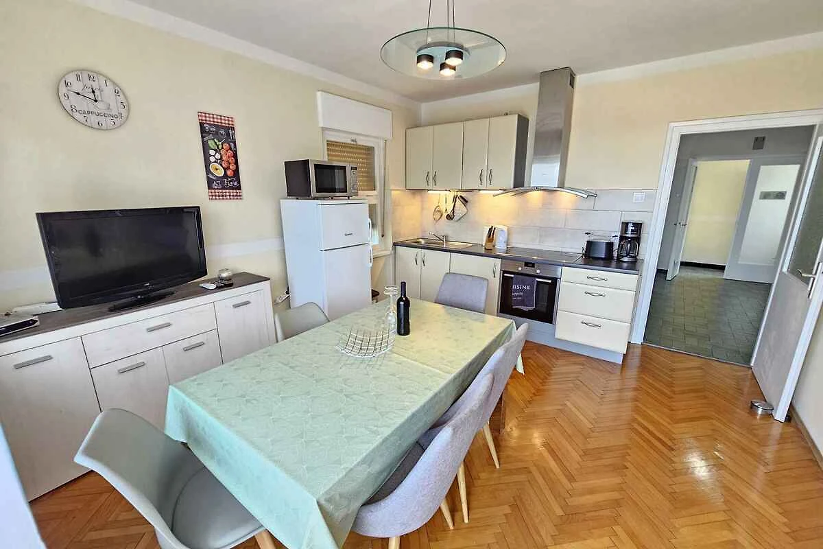 Novi Vinodolski, Ortsteil Lukavice. Die Ferienwohnung befindet sich auf einem 400 qm grossen, geschlossenen Gartengrundstück mit Sträuchern und Bäumen, von einem Zaun begrenzt. Der Vermieter wohnt nur zeitweise im Haus, nutzt jedoch einen separaten Eingang. Wohnung im hohen Erdgeschoss. Die Zufahrt erfolgt über eine Nebenstrasse (asphaltiert, Länge 30 m). Parkplatz (für 1 Pkw) auf der Strasse vor dem Haus und einem Parkplatz im Ort (Entfernung 50 m).