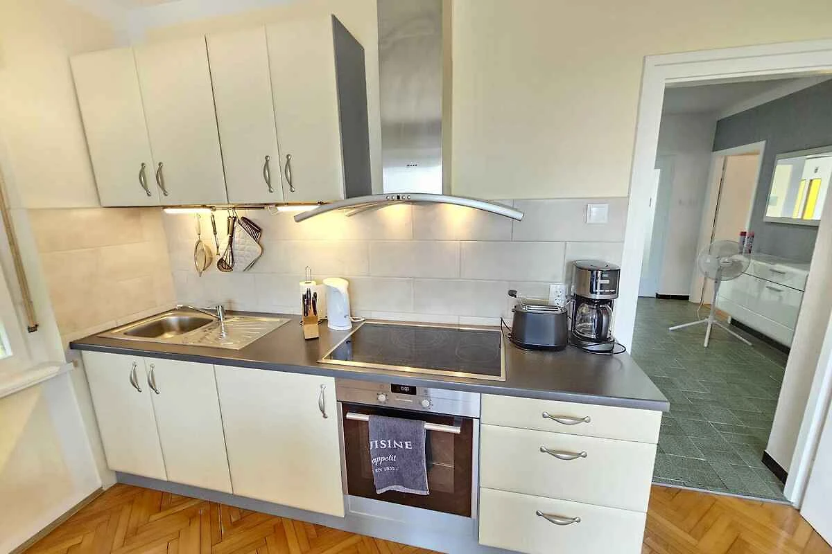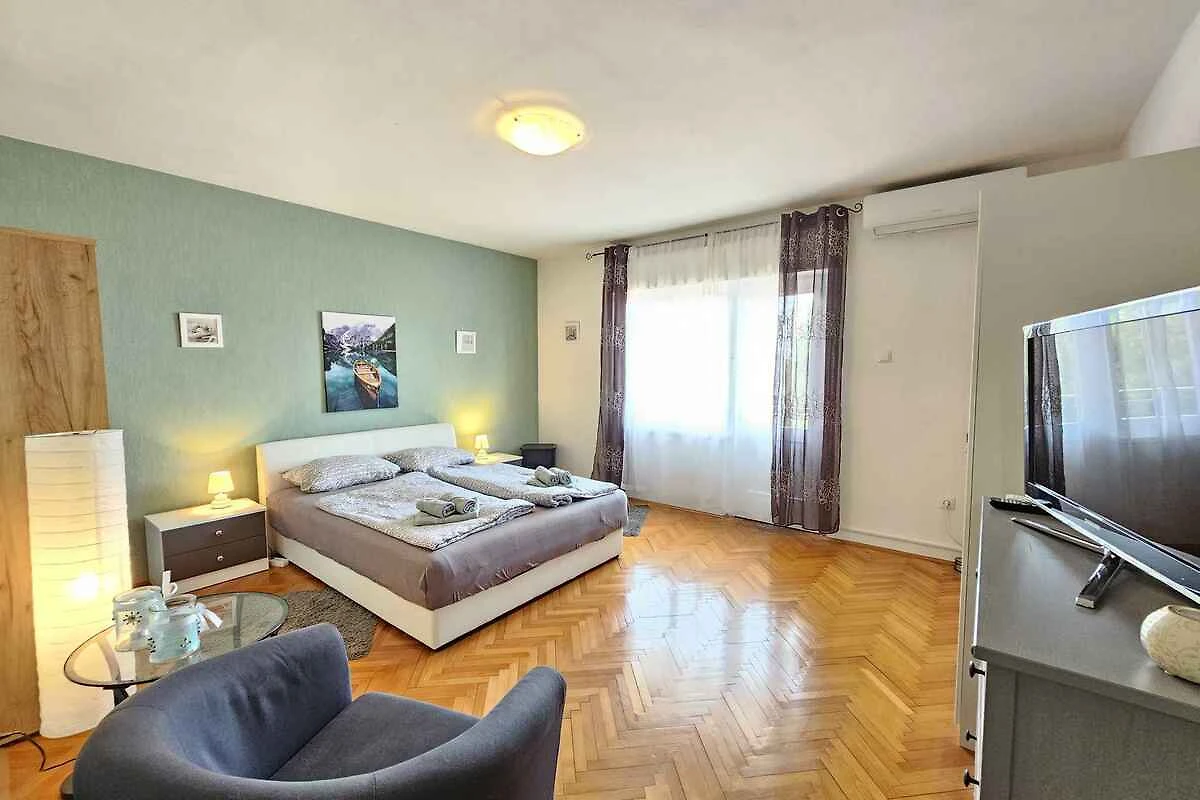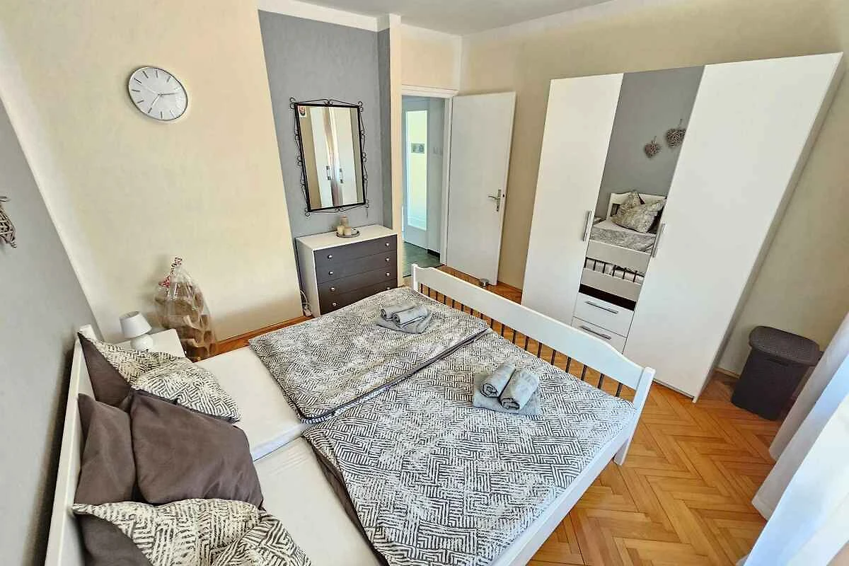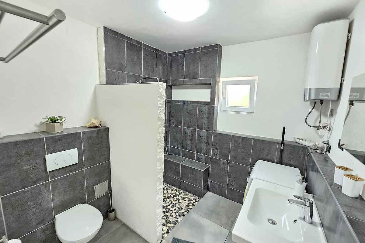 Novi Vinodolski, Ortsteil Lukavice. Die Ferienwohnung befindet sich auf einem 400 qm grossen, geschlossenen Gartengrundstück mit Sträuchern und Bäumen, von einem Zaun begrenzt. Der Vermieter wohnt nur zeitweise im Haus, nutzt jedoch einen separaten Eingang. Wohnung im hohen Erdgeschoss. Die Zufahrt erfolgt über eine Nebenstrasse (asphaltiert, Länge 30 m). Parkplatz (für 1 Pkw) auf der Strasse vor dem Haus und einem Parkplatz im Ort (Entfernung 50 m).