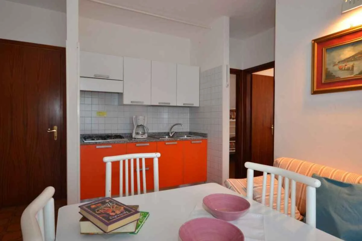 Bibione, Ortsteil Pineda. Der Vermieter wohnt nicht im Haus oder auf dem Grundstück. Parkplatz (für 1 Pkw) auf dem Grundstück. Parkplatz je nach Verfügbarkeit.