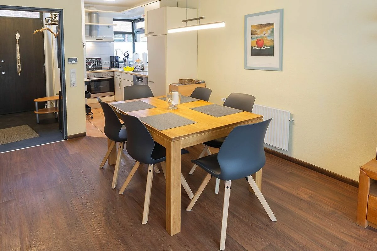 Das Ferienhaus Marisol liegt im Ortskern und trotzdem in ruhiger Lage am Kukshörner Weg 7d. Durch den Eingangsbereich mit Garderobe und Gäste-WC gelangen Sie in den hellen Wohn-/Essraum mit angrenzender moderner Küchenzeile. Weiter geht es auf die Süd-Terrasse mit Gartenmobiliar und Markisen-Sonnenschutz. Das Grundstück ist eingezäunt mit einer Zaunhöhe von circa 80 cm. Im ersten Obergeschoss kommen Sie ins modernisierte Duschbad mit Waschmaschine und Trockner. Hier gibt es ein Doppelschlafzimmer mit Holzkinderbett und ein Schlafzimmer mit zwei Einzelbetten. Das schöne, ausgebaute Dachzimmer bietet noch zwei weitere Schlafmöglichkeiten. Ihr eigener Stellplatz befindet sich direkt vor dem Haus. Der Eigentümer hat für Sie kostenfrei einen Strandkorb reserviert.