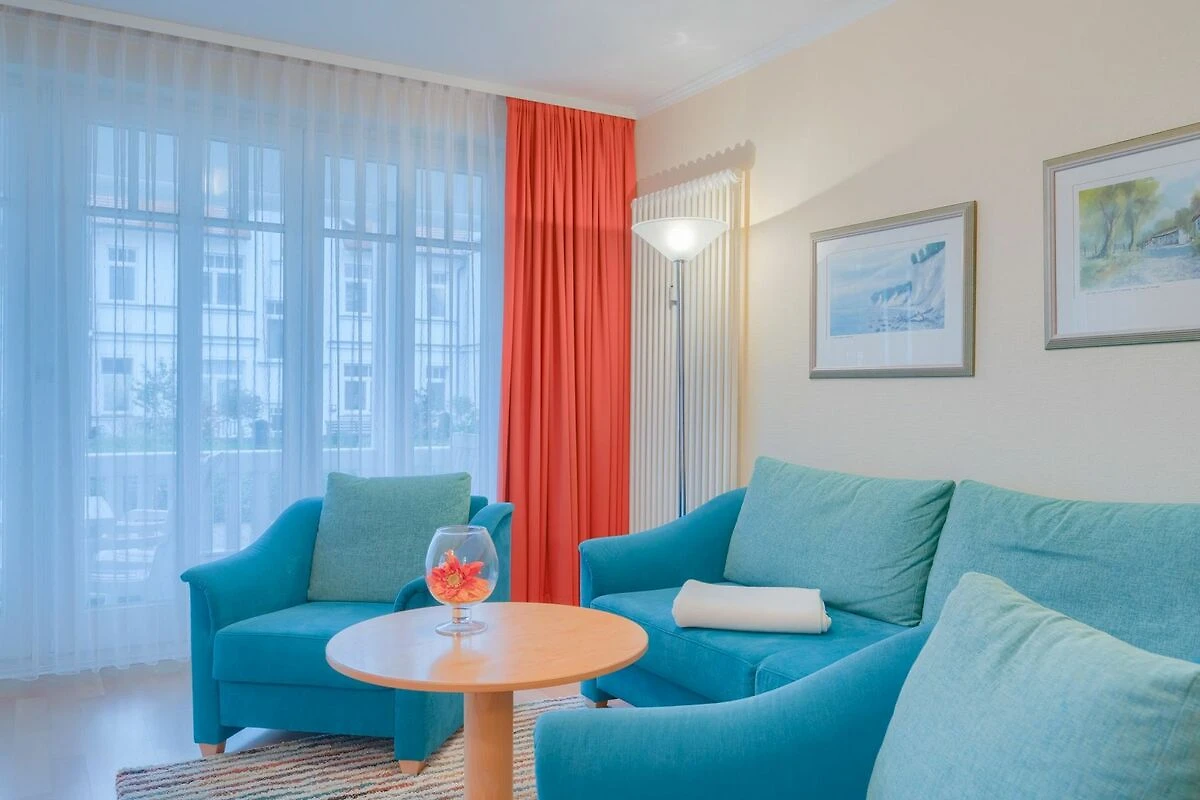 Direkt an der berühmten Binzer Strandpromenade befindet sich die Ferienwohnung 717 in der Villa Elfeld 2, nur wenige Gehminuten von dem Binzer Bahnhof, dem bekannten Kurhaus und der Seebrücke entfernt.