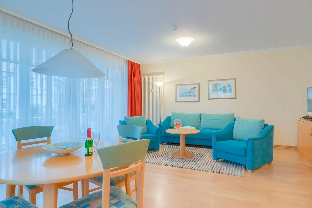 Die 78 m ² grosse und mit 4 DTV Sternen klassifizierte Ferienwohnung 717 befindet sich im Erdgeschoss in der Villa Elfeld 2. Sie bietet mit ihren drei Zimmern ausreichend Platz für bis zu 4 Personen.