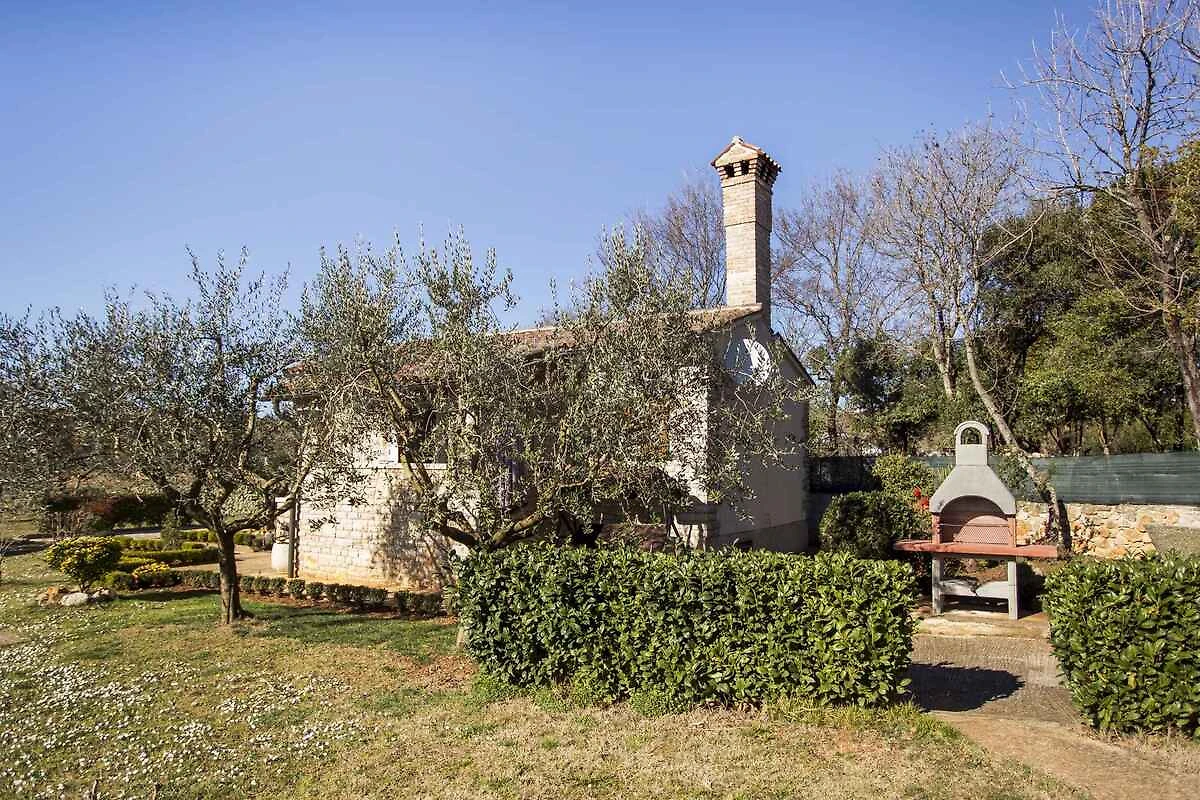 Rovinj. Das Ferienhaus befindet sich auf einem Bauernhof, auf einem geschlossenen Gartengrundstück mit Wiese, Blumen und Bäumen, von einem Zaun begrenzt. Der Vermieter wohnt in einem separaten Gebäude auf dem Grundstück. Die Zufahrt erfolgt über einen Feld- oder Waldweg (Geröll oder Schotter). Parkplatz auf dem Grundstück.