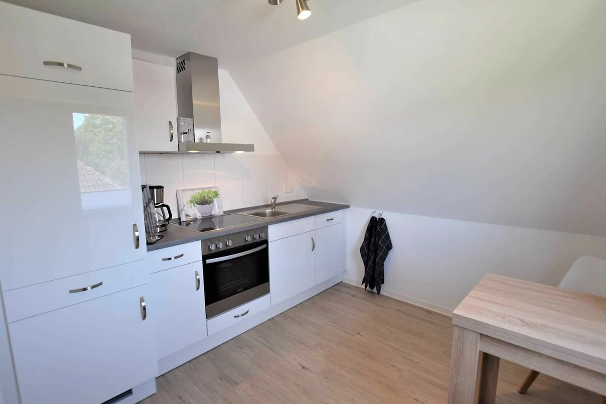 Die helle und frisch renovierte Ferienwohnung in Malente befindet sich im OG eines freistehenden Hauses in ruhiger Lage und in unmittelbarer Nähe zum Dieksee und diversen Kurkliniken.