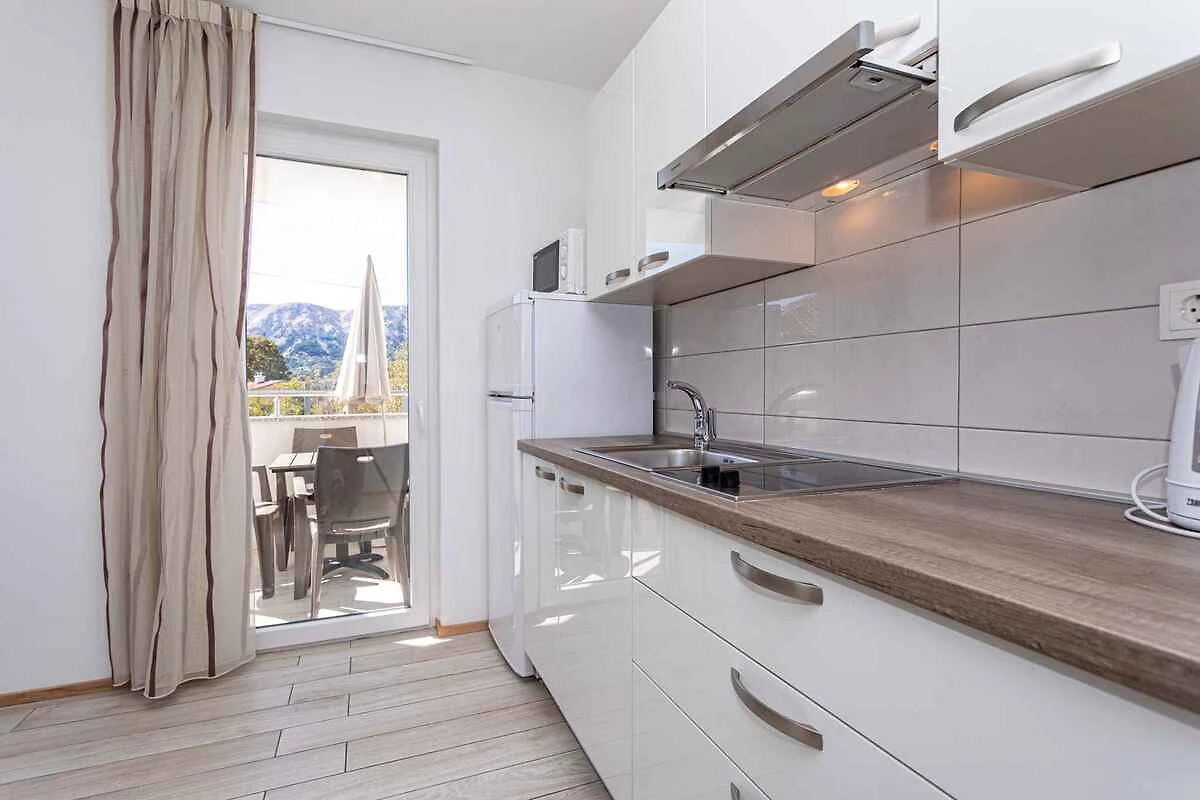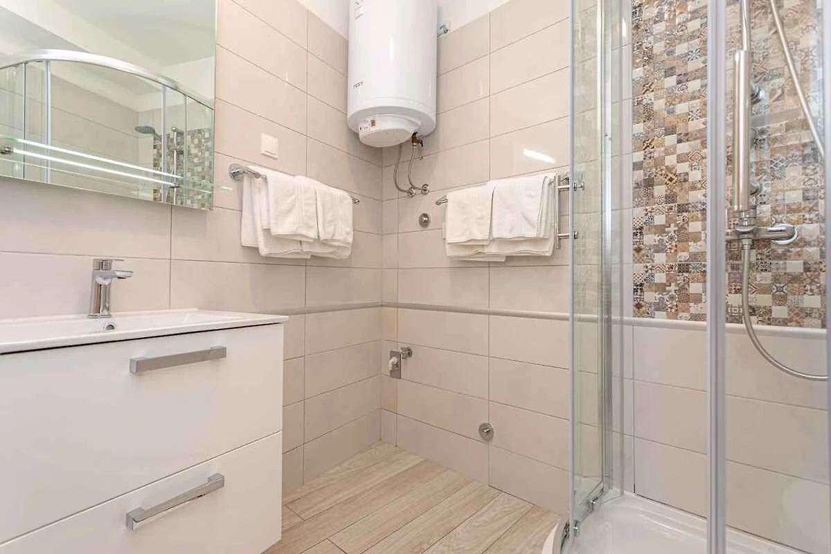 Die Ferienwohnung befindet sich in einem 2016 erbauten Apartementhaus und ist modern und luxuriös eingerichtet. Das Grundstück liegt in einem Wohngebiet, im Ortszentrum. Auch wegen der ruhigen und sonnigen Hanglage ist das Domizil beliebt. Zur gemeinsamen Nutzung stehen zur Verfügung: Grillmöglichkeit, Terrasse, Gartenmöbel und Hof. Die Unterkunft verfügt über eine eigene Rezeption, die täglich arbeitet. Babybett auf Anfrage erhältlich.