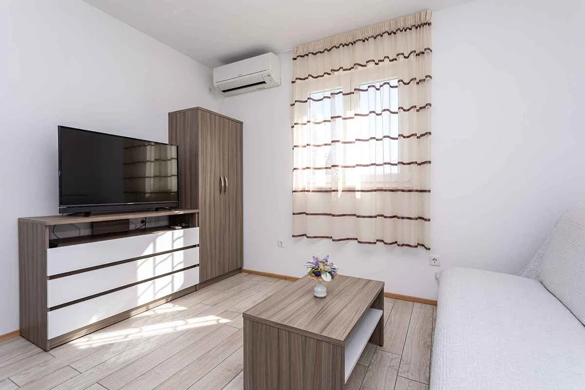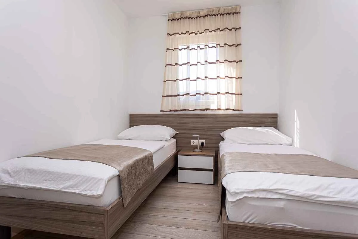 Baška. Die Ferienwohnung befindet sich auf einem 80 qm grossen, geschlossenen Gartengrundstück mit Wiese, Blumen und Sträuchern, von einem Zaun begrenzt. Der Vermieter wohnt nicht im Haus oder auf dem Grundstück. Die Zufahrt erfolgt über eine Nebenstrasse (asphaltiert, Länge 1 m). Parkplatz (für 1 Pkw) auf dem Grundstück. Parken ist vor dem Haus.