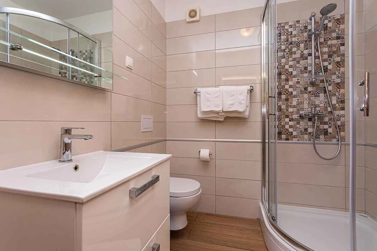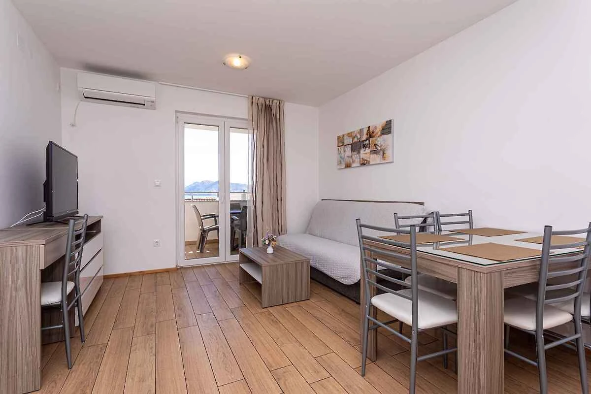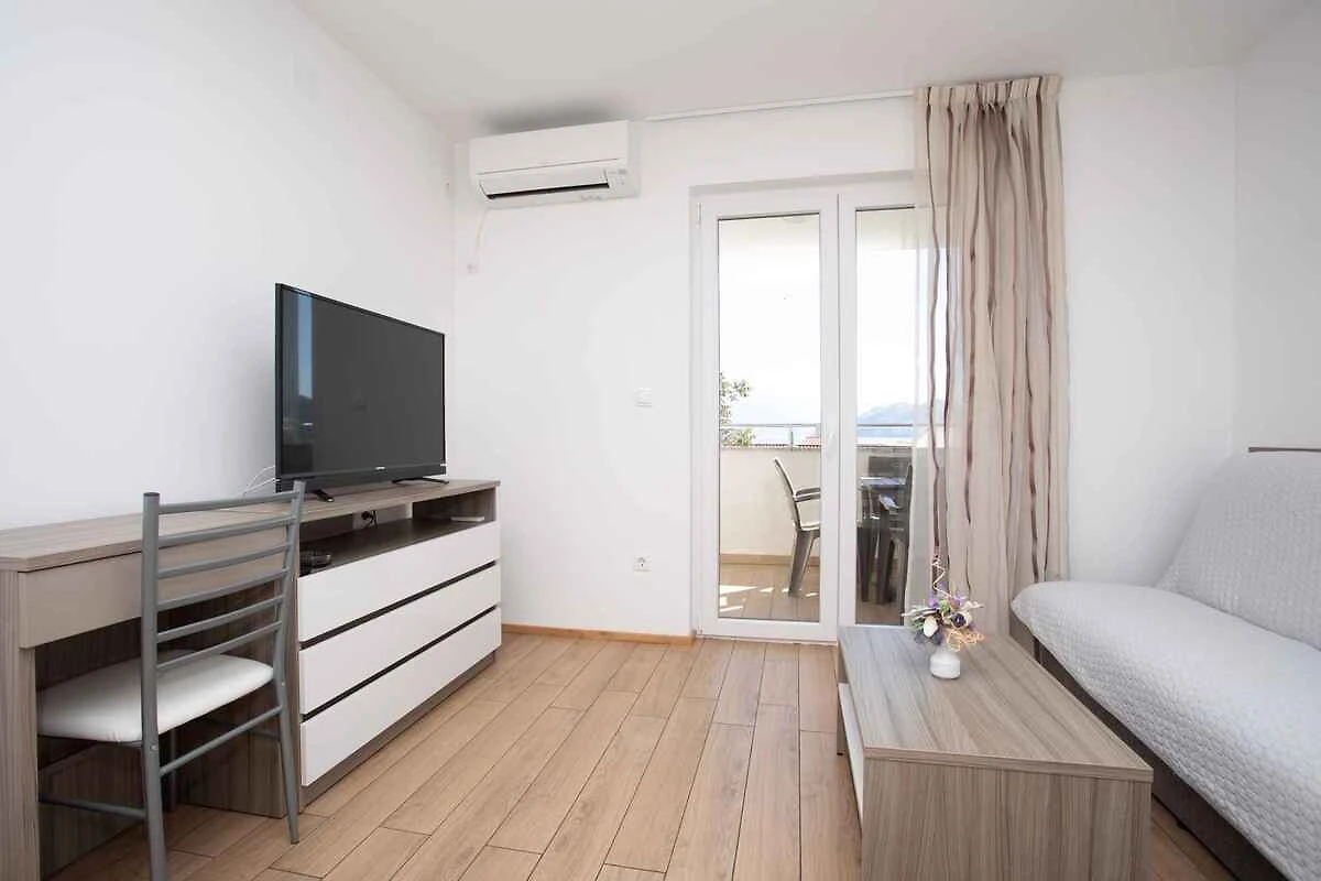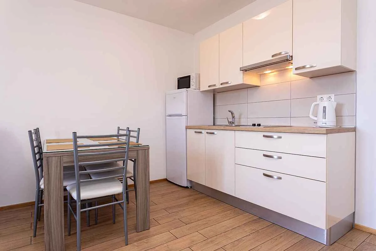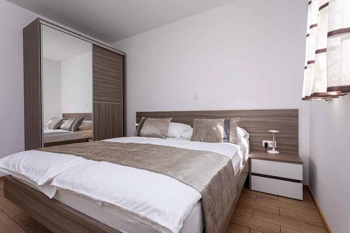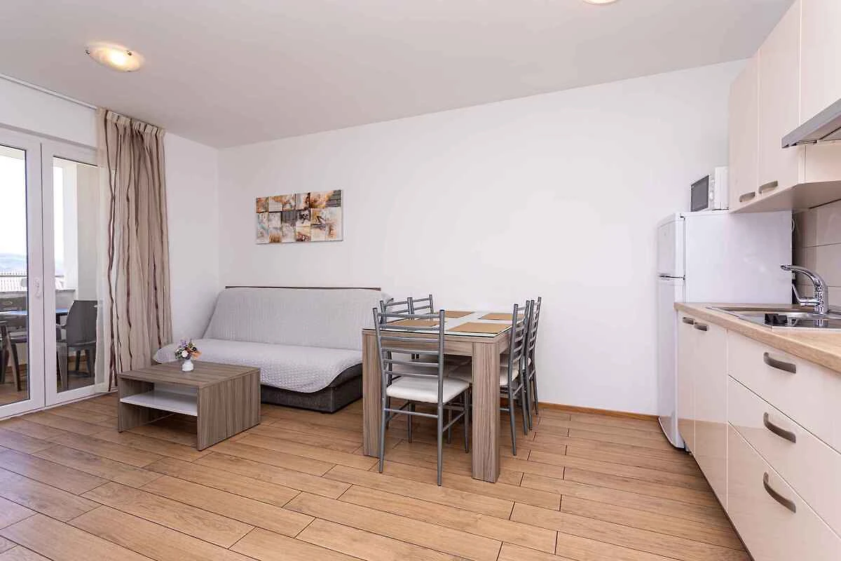 Die Ferienwohnung befindet sich in einem 2016 erbauten Apartementhaus und ist modern und luxuriös eingerichtet. Das Grundstück liegt in einem Wohngebiet, im Ortszentrum. Auch wegen des Ausblicks vom Grundstück auf das Meer und der ruhigen und sonnigen Hanglage ist das Domizil beliebt. Zur gemeinsamen Nutzung stehen zur Verfügung: Grillmöglichkeit, Gartenmöbel und Hof. Die Unterkunft verfügt über eine eigene Rezeption, die täglich arbeitet. Babybett auf Anfrage erhältlich.