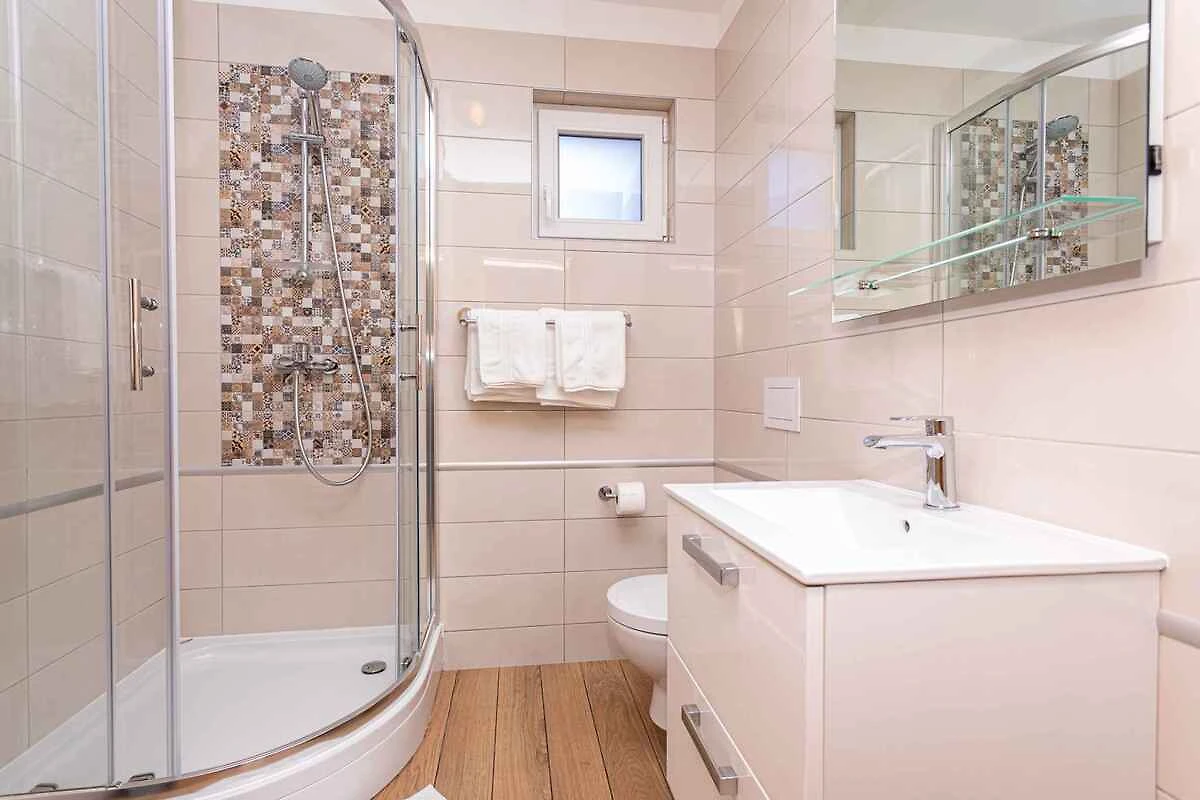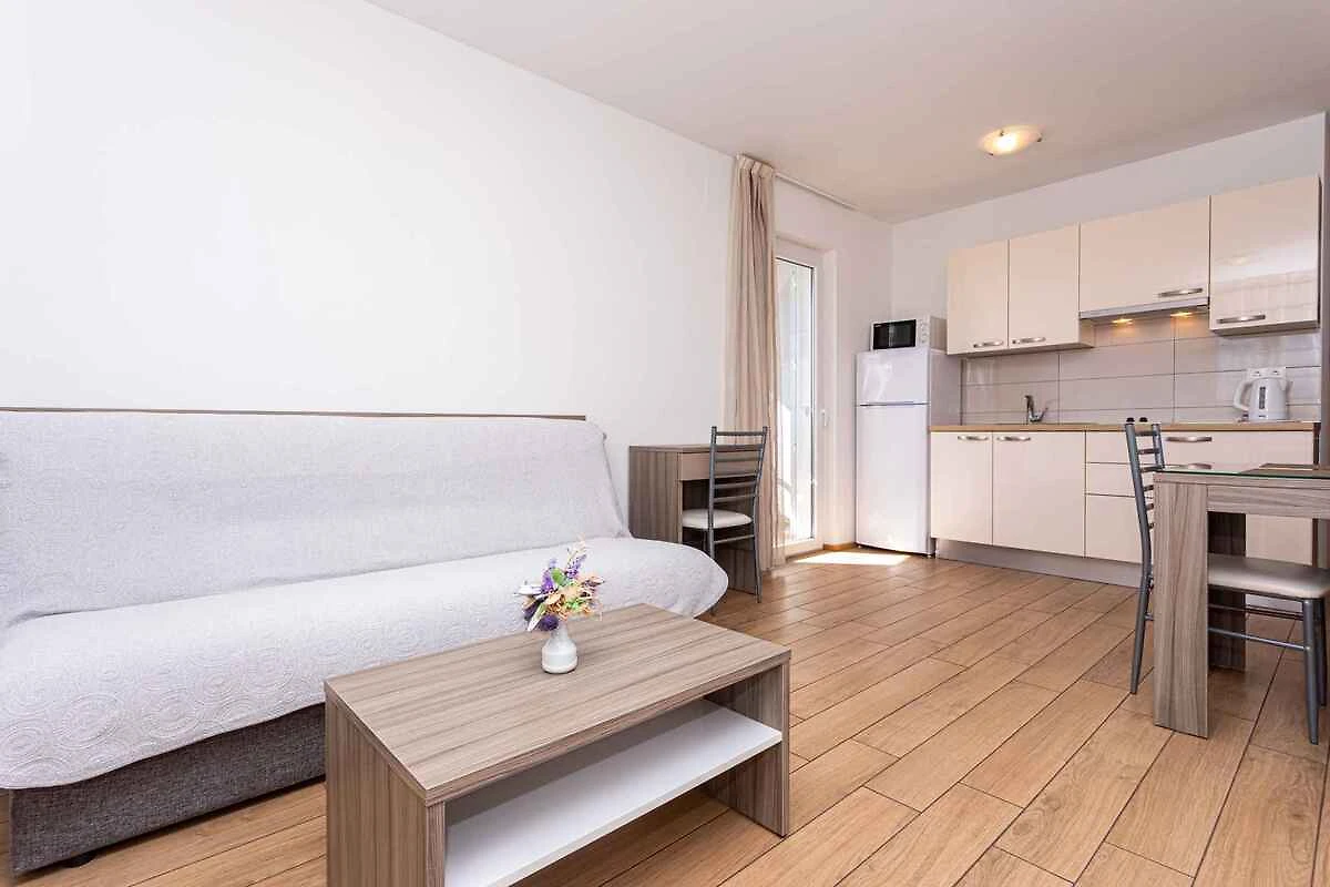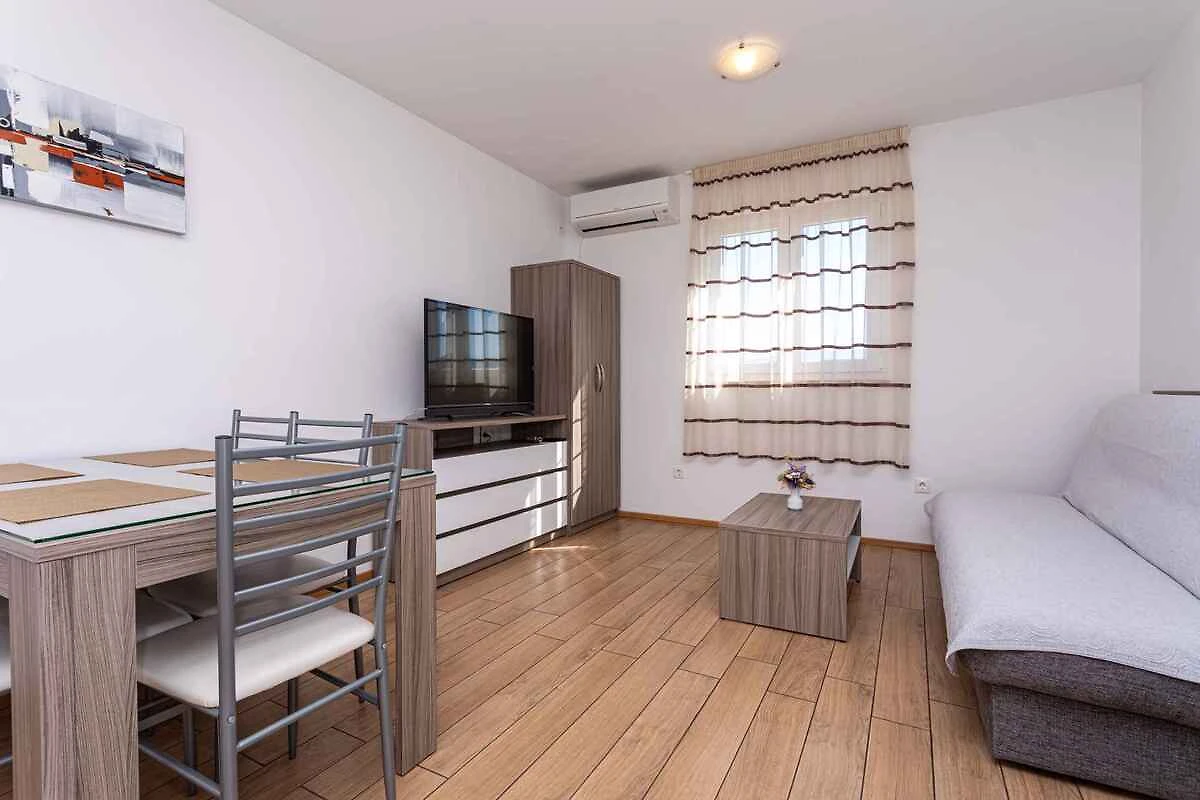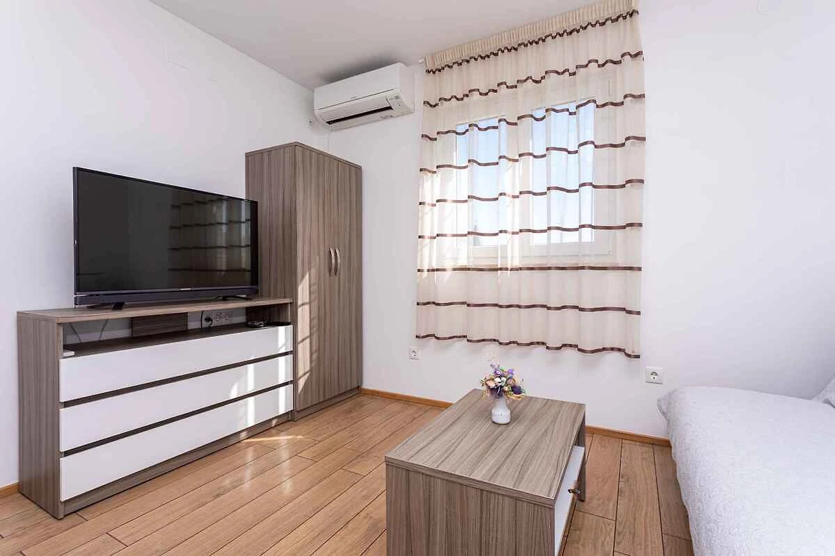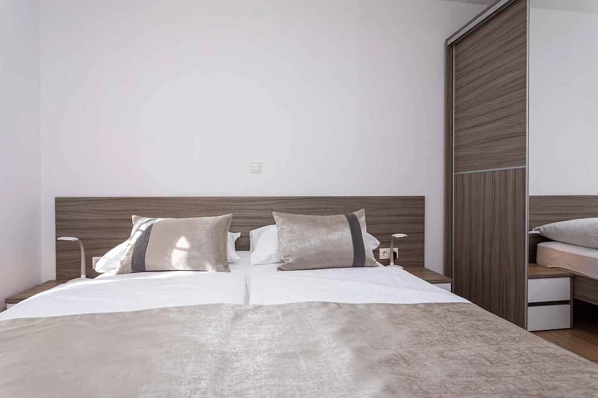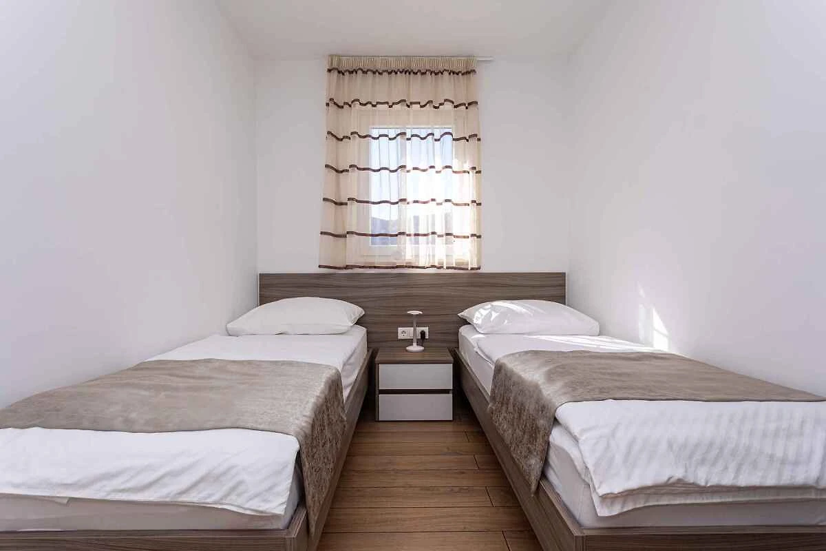 Die Ferienwohnung befindet sich in einem 2016 erbauten Apartementhaus und ist modern und zweckmässig eingerichtet. Das Grundstück liegt in einem Wohngebiet, im Ortszentrum. Auch wegen des Ausblicks vom Grundstück auf das Meer und der ruhigen und sonnigen Hanglage ist das Domizil beliebt. Zur gemeinsamen Nutzung stehen zur Verfügung: Grillmöglichkeit, Gartenmöbel und Hof. Die Unterkunft verfügt über eine eigene Rezeption, die täglich arbeitet. Babybett auf Anfrage erhältlich.