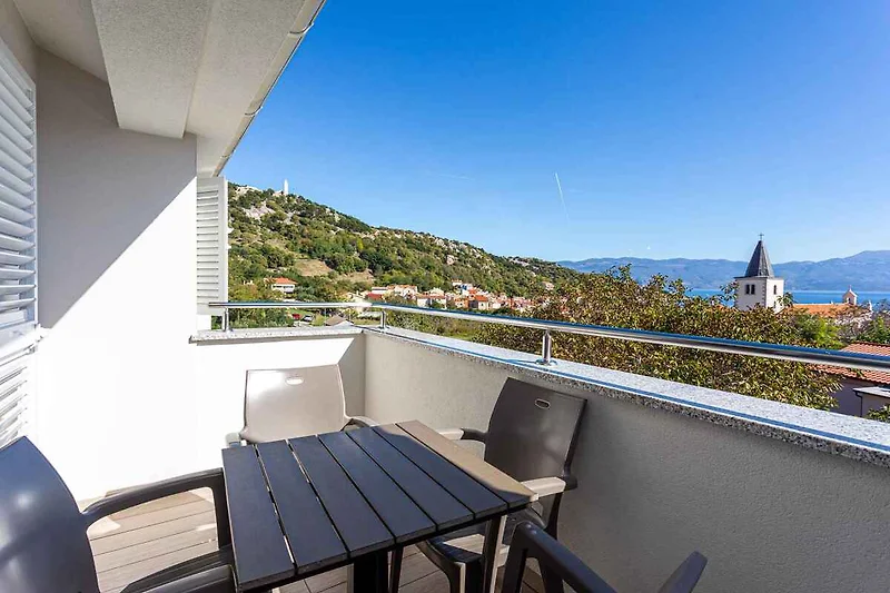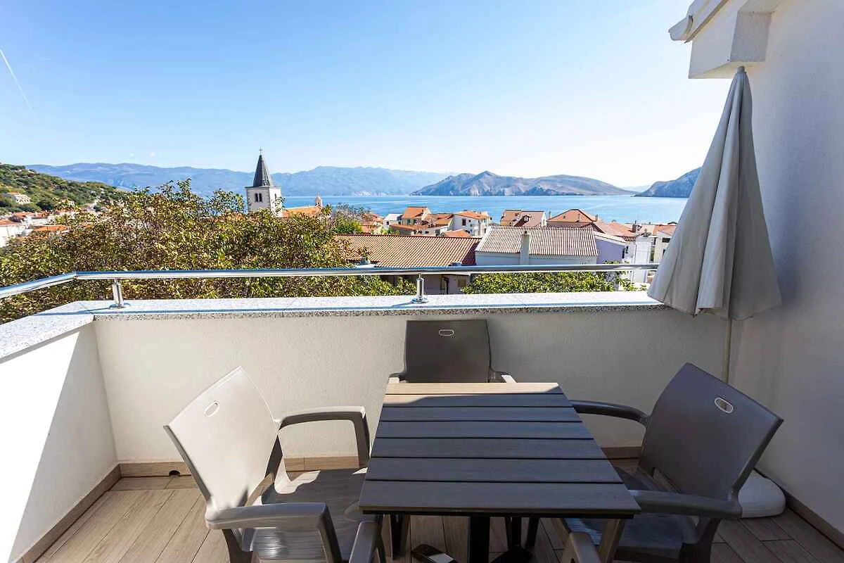 Einkauf 250 m, Restaurant 150 m, Ortszentrum 150 m. Baška: Arzt 200 m, Apotheke, Bank jeweils 250 m. Diskothek 350 m. Flughafen in Omišalj 45 km. Bahnhof in Rijeka 70 km. Hauptstrasse 150 m. Im Sommer: Adriatisches Meer 200 m in Baška (Strand 200 m in Baška mit Kies). Baška: Minigolf 1500 m, Hundestrand, Tauchen jeweils 2 km. Bootsverleih 800 m. FKK-Strand 1000m.