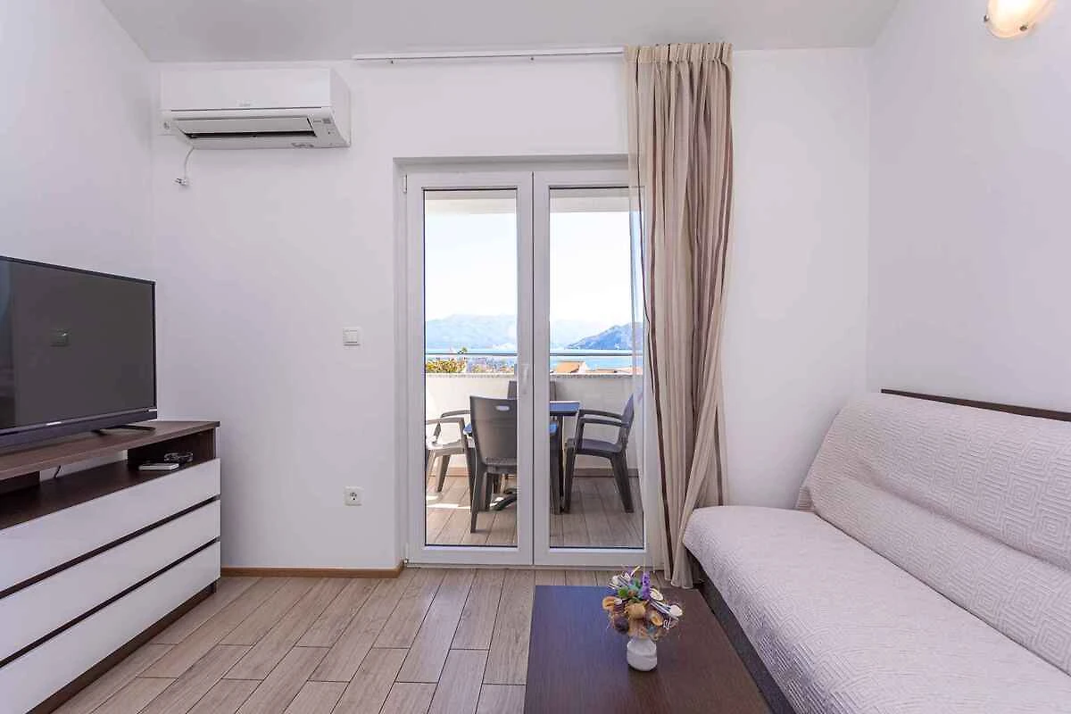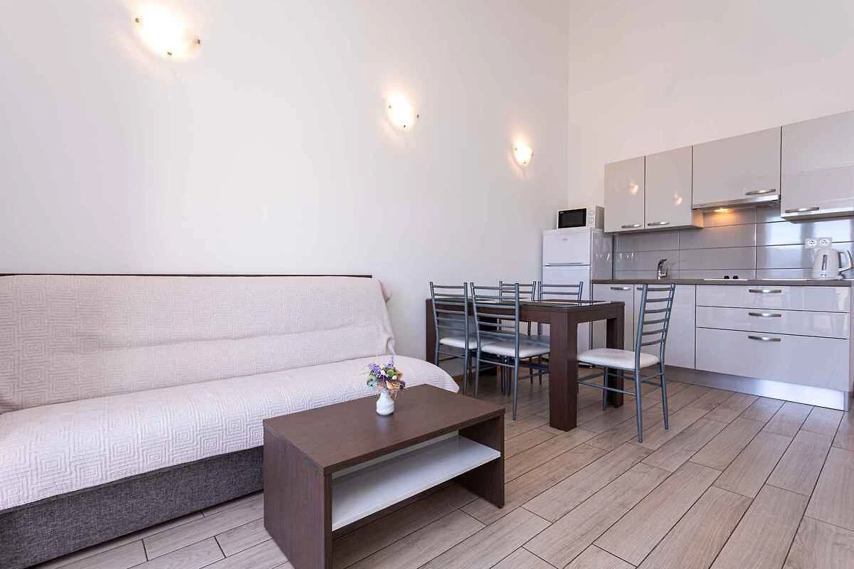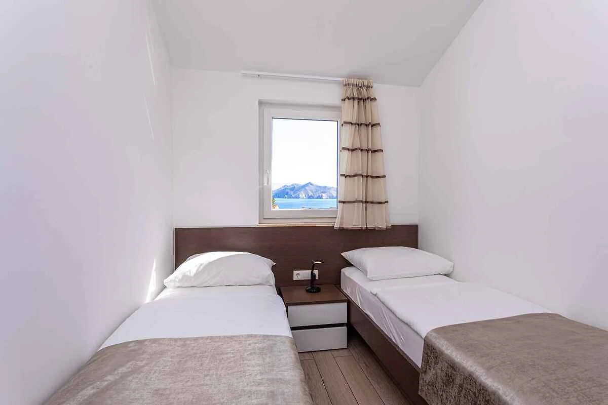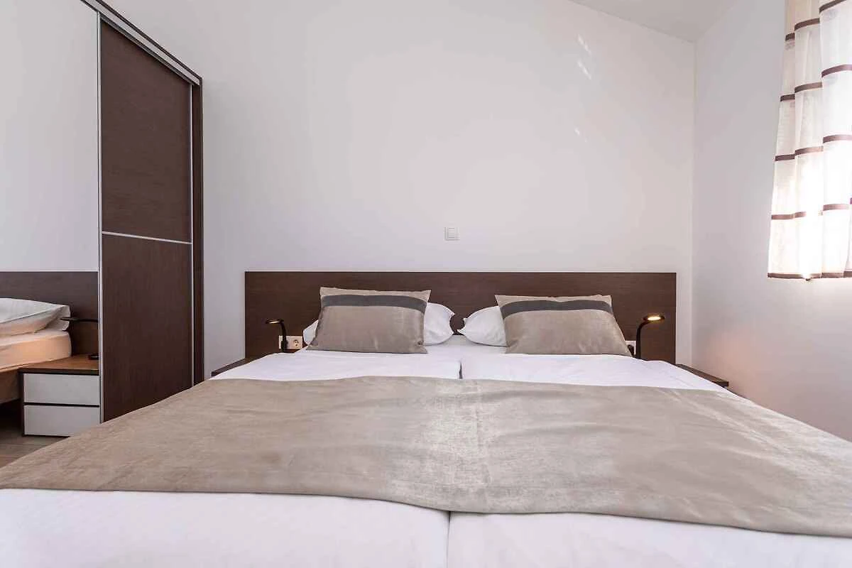 Die Ferienwohnung befindet sich in einem 2016 erbauten Apartementhaus und ist modern und luxuriös eingerichtet. Das Grundstück liegt in einem Wohngebiet, im Ortszentrum. Auch wegen des Ausblicks vom Grundstück auf das Meer und der ruhigen und sonnigen Hanglage ist das Domizil beliebt. Zur gemeinsamen Nutzung stehen zur Verfügung: Grillmöglichkeit, Gartenmöbel und Hof. Die Unterkunft verfügt über eine eigene Rezeption, die täglich arbeitet. Babybett auf Anfrage erhältlich.