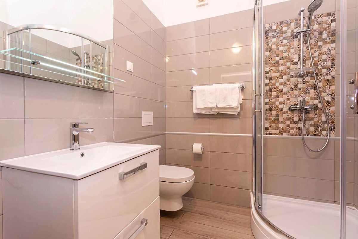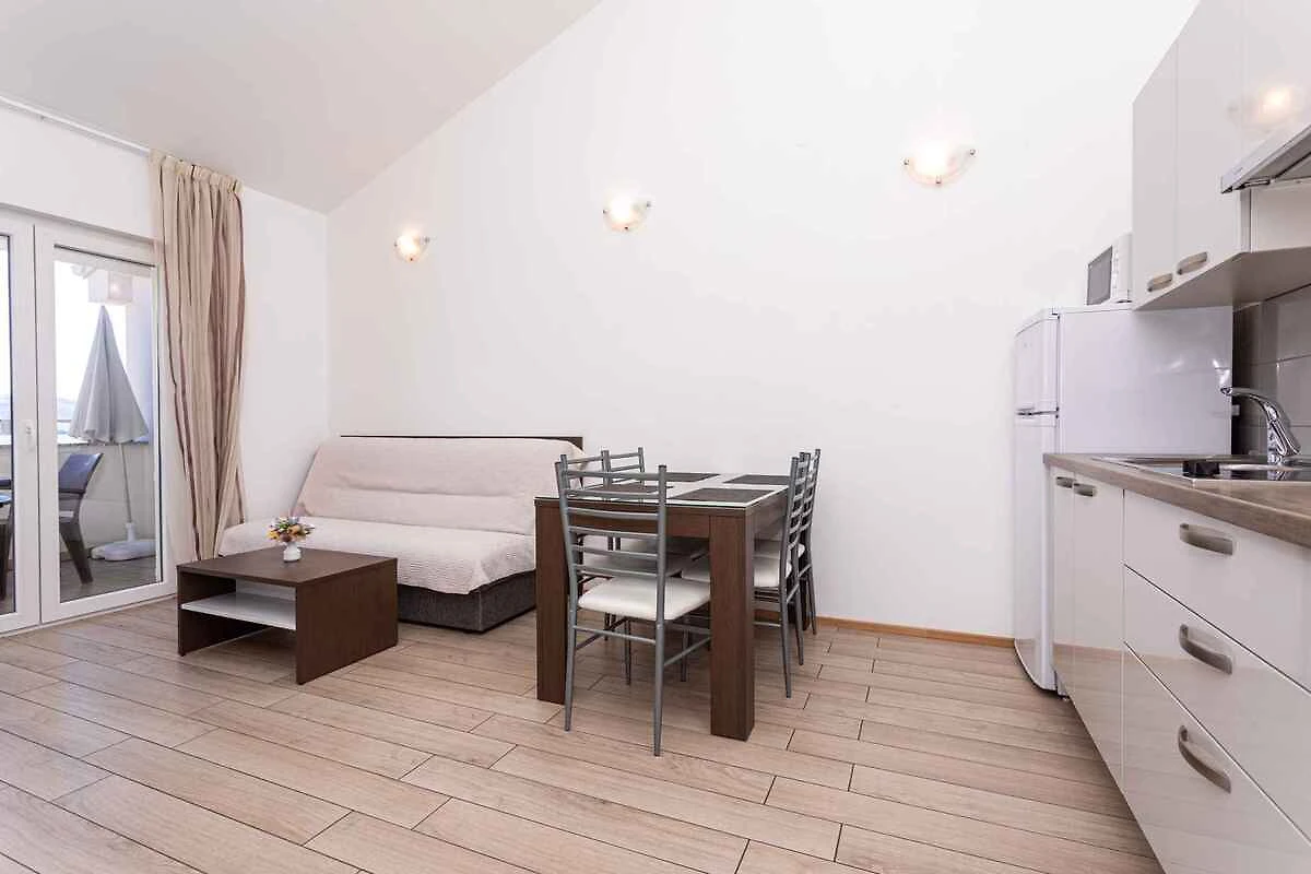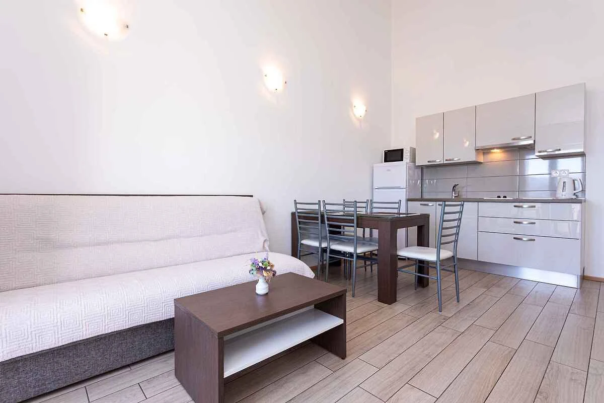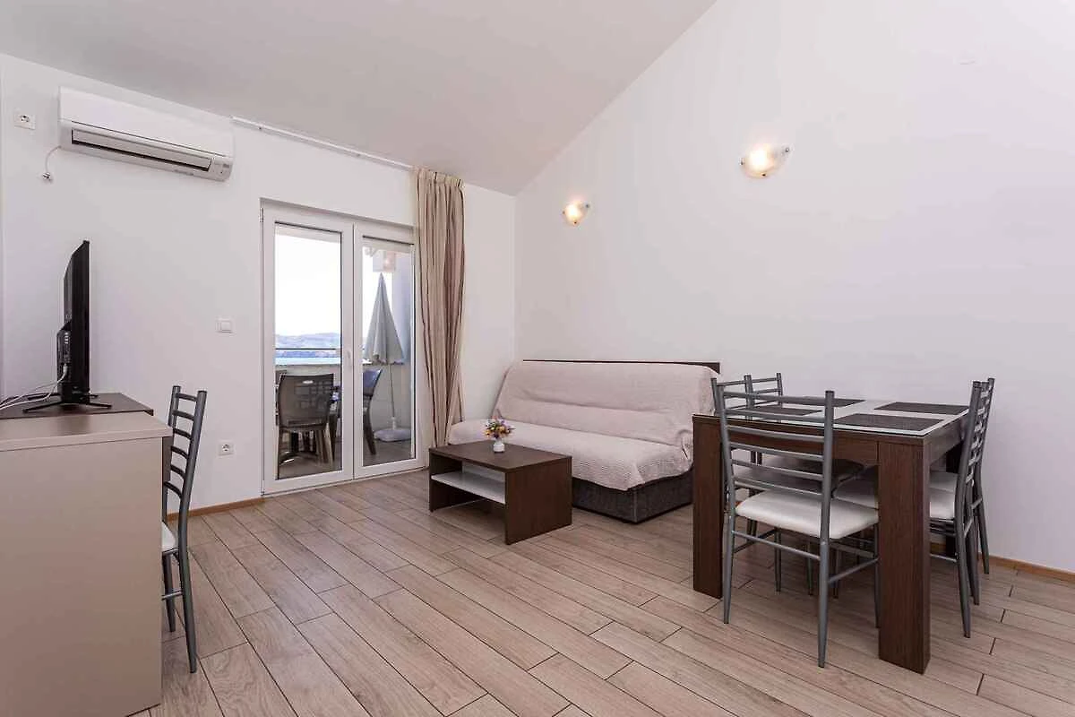 Die Ferienwohnung befindet sich in einem 2016 erbauten Apartementhaus und ist modern und luxuriös eingerichtet. Das Grundstück liegt in einem Wohngebiet, im Ortszentrum. Auch wegen des Ausblicks vom Grundstück auf das Meer und der ruhigen und sonnigen Hanglage ist das Domizil beliebt. Zur gemeinsamen Nutzung stehen zur Verfügung: Grillmöglichkeit, Gartenmöbel und Hof. Die Unterkunft verfügt über eine eigene Rezeption, die täglich arbeitet. Babybett auf Anfrage erhältlich.