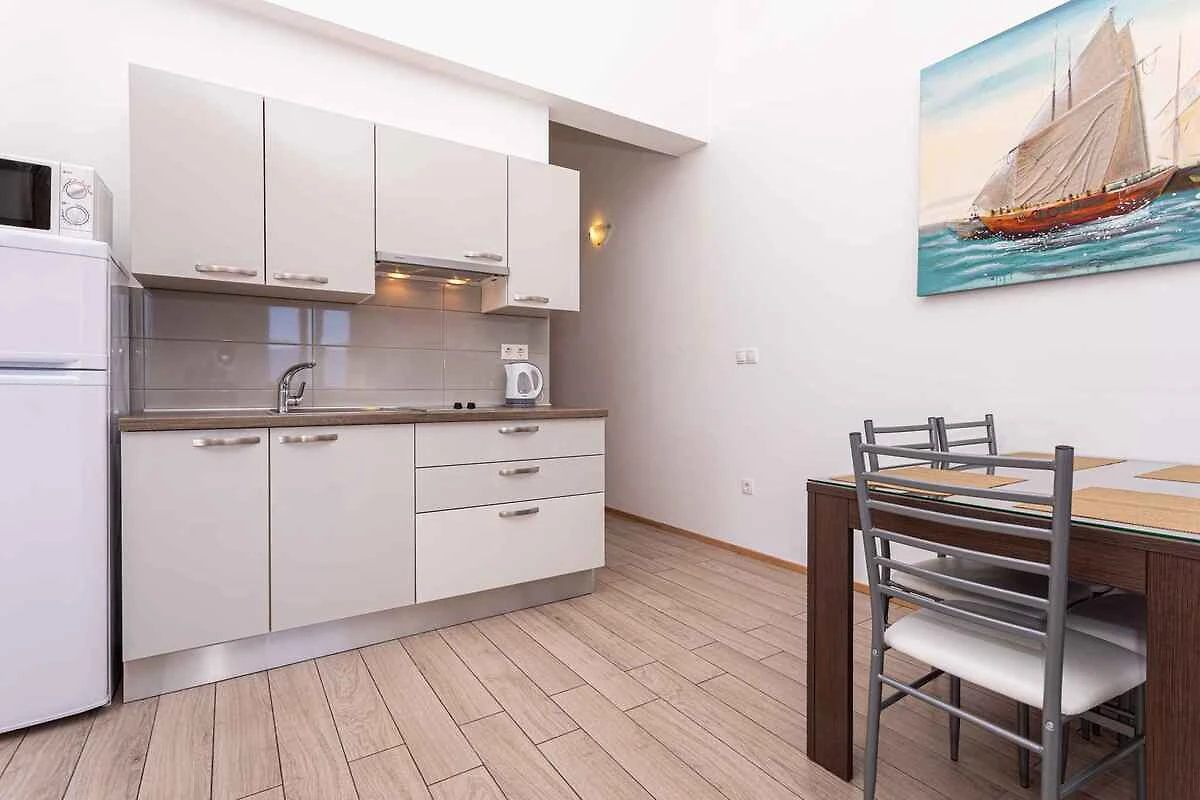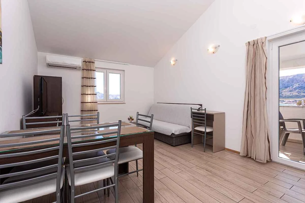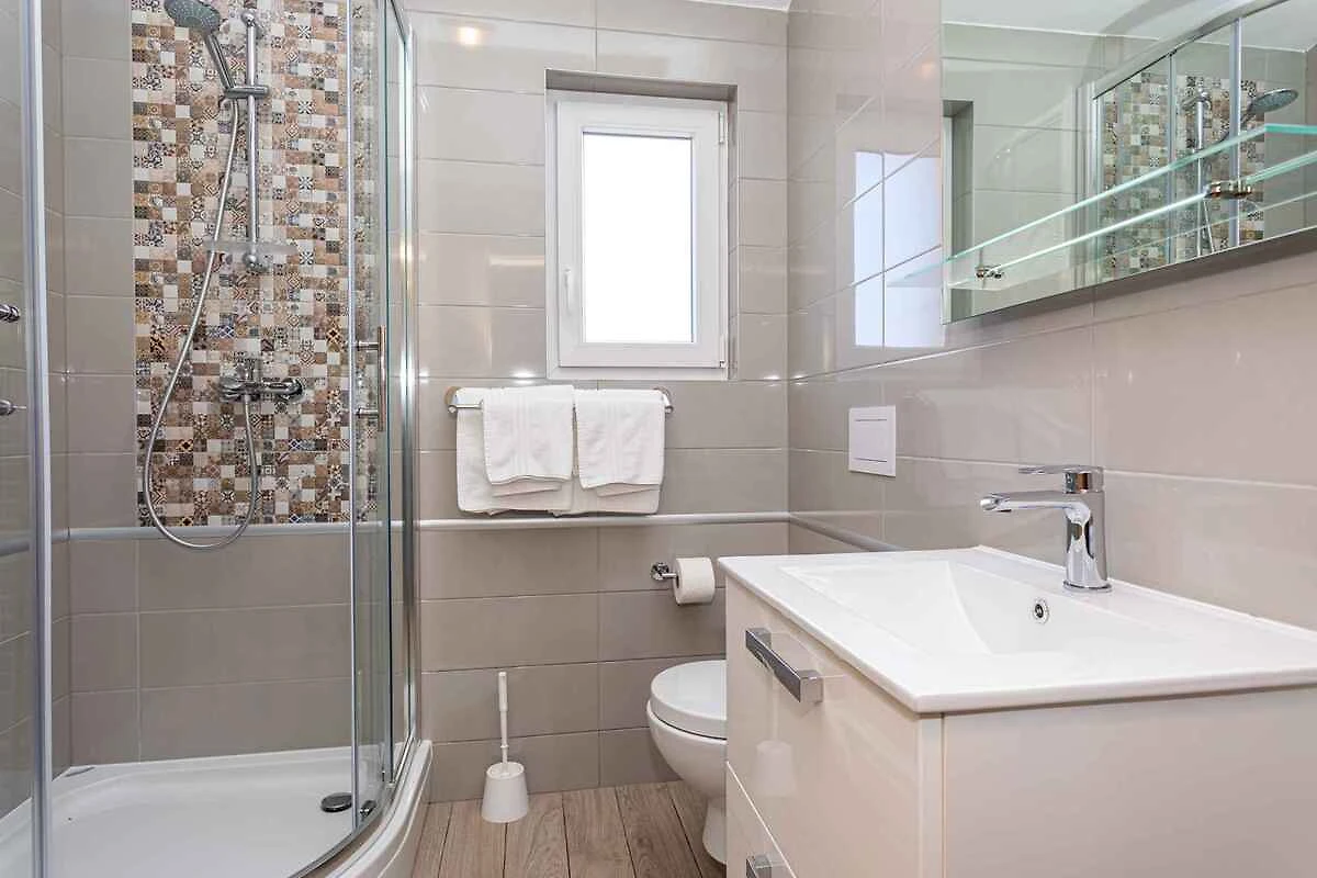 Die Ferienwohnung befindet sich in einem 2016 erbauten Apartementhaus und ist modern und zweckmässig eingerichtet. Das Grundstück liegt in einem Wohngebiet, im Ortszentrum. Auch wegen des Ausblicks vom Grundstück auf das Meer und der ruhigen und sonnigen Hanglage ist das Domizil beliebt. Zur gemeinsamen Nutzung stehen zur Verfügung: Grillmöglichkeit, Gartenmöbel und Hof. Die Unterkunft verfügt über eine eigene Rezeption, die täglich arbeitet. Babybett auf Anfrage erhältlich.