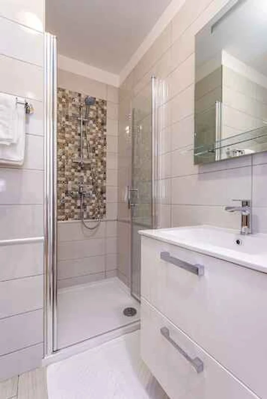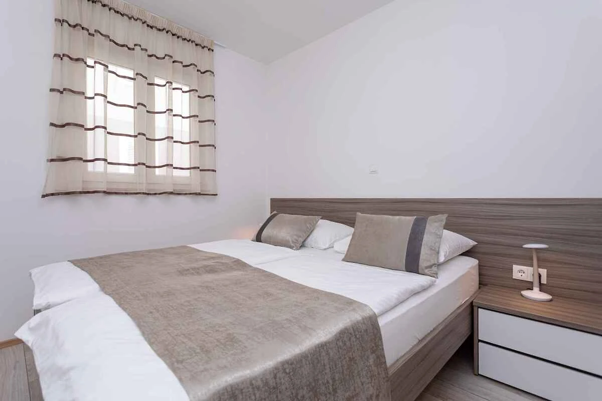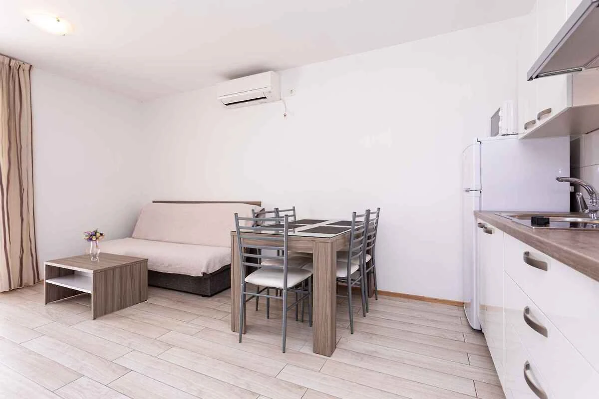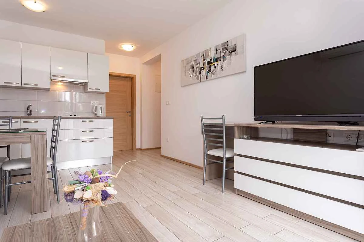 Die Ferienwohnung befindet sich in einem 2016 erbauten Apartementhaus und ist modern und luxuriös eingerichtet. Das Grundstück liegt in einem Wohngebiet, im Ortszentrum. Auch wegen des Ausblicks vom Grundstück auf das Meer und der ruhigen und sonnigen Hanglage ist das Domizil beliebt. Zur gemeinsamen Nutzung stehen zur Verfügung: Grillmöglichkeit, Terrasse, Gartenmöbel und Hof. Die Unterkunft verfügt über eine eigene Rezeption, die täglich arbeitet. Babybett auf Anfrage erhältlich.