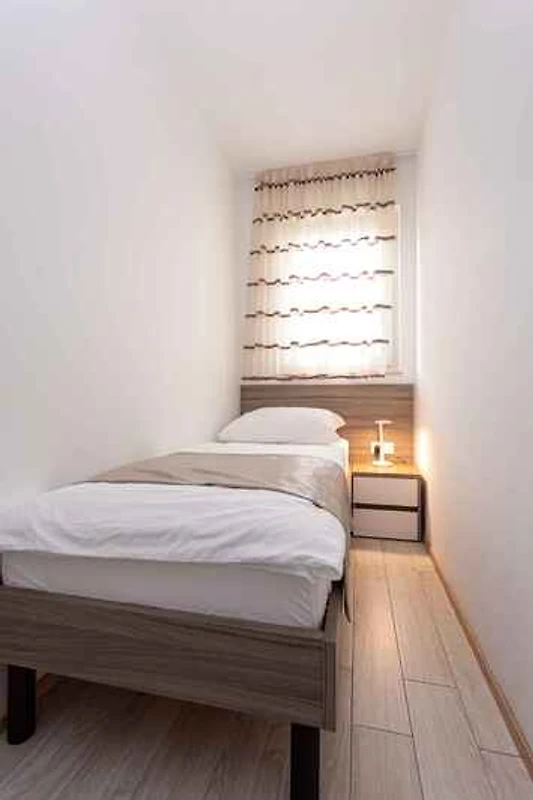 Baška. Die Ferienwohnung befindet sich auf einem 80 qm grossen, geschlossenen Gartengrundstück mit Wiese, Blumen und Sträuchern, von einem Zaun begrenzt. Der Vermieter wohnt nicht im Haus oder auf dem Grundstück. Die Zufahrt erfolgt über eine Nebenstrasse (asphaltiert, Länge 1 m). Parkplatz (für 1 Pkw) auf dem Grundstück. Parken ist vor dem Haus.