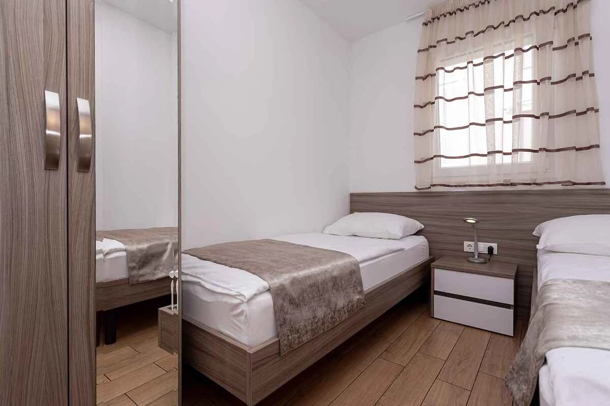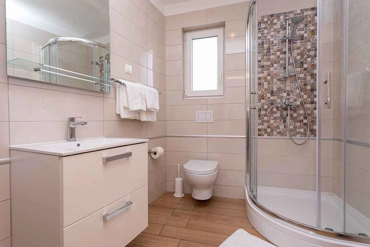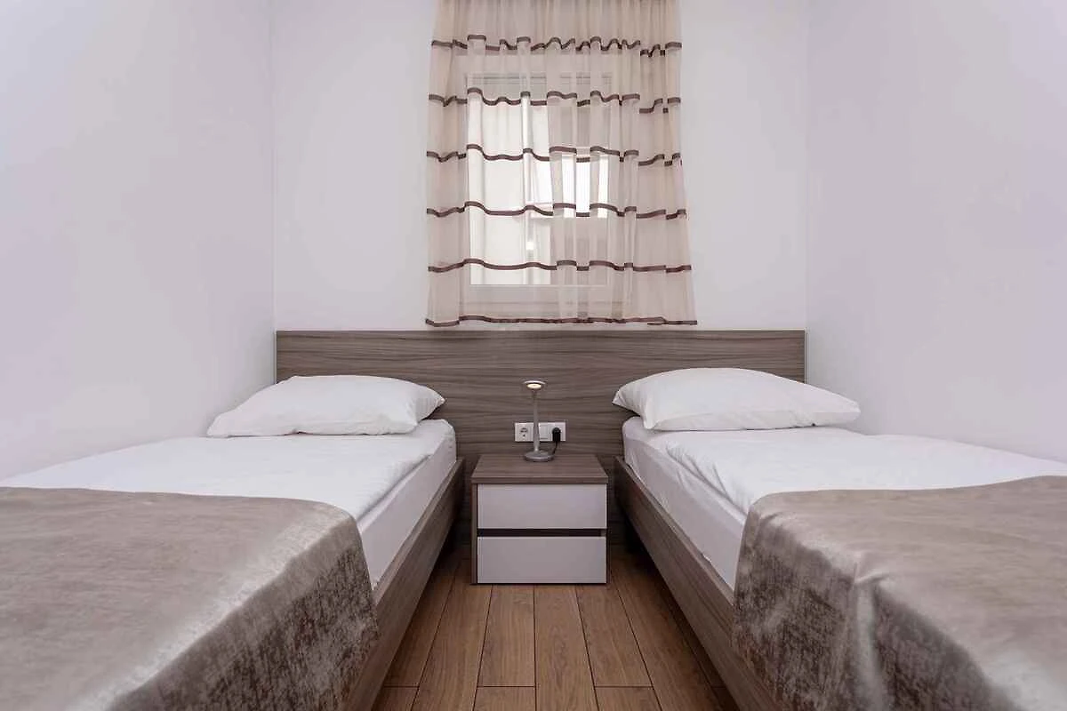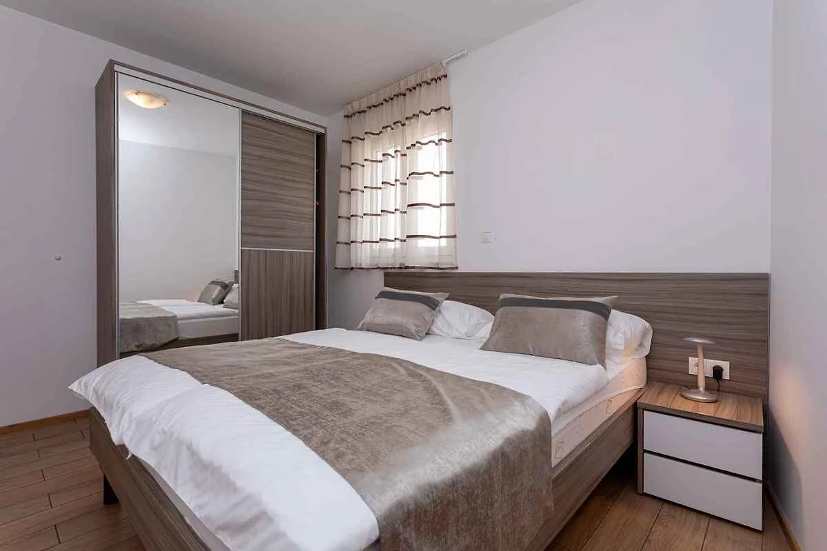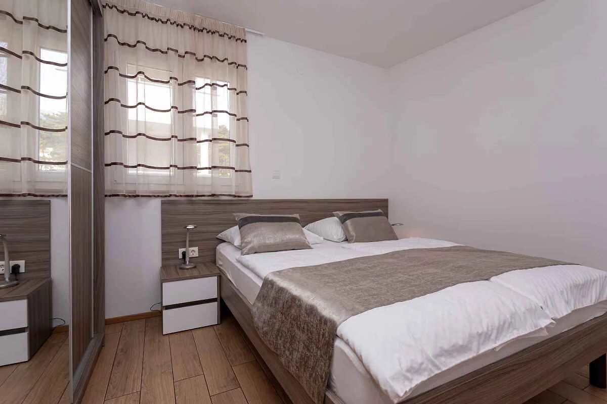 Die Ferienwohnung befindet sich in einem 2016 erbauten Apartementhaus und ist modern und luxuriös eingerichtet. Das Grundstück liegt in einem Wohngebiet, im Ortszentrum. Auch wegen des Ausblicks vom Grundstück auf das Meer und der ruhigen und sonnigen Hanglage ist das Domizil beliebt. Zur gemeinsamen Nutzung stehen zur Verfügung: Grillmöglichkeit, Gartenmöbel und Hof. Die Unterkunft verfügt über eine eigene Rezeption, die täglich arbeitet. Babybett auf Anfrage erhältlich.