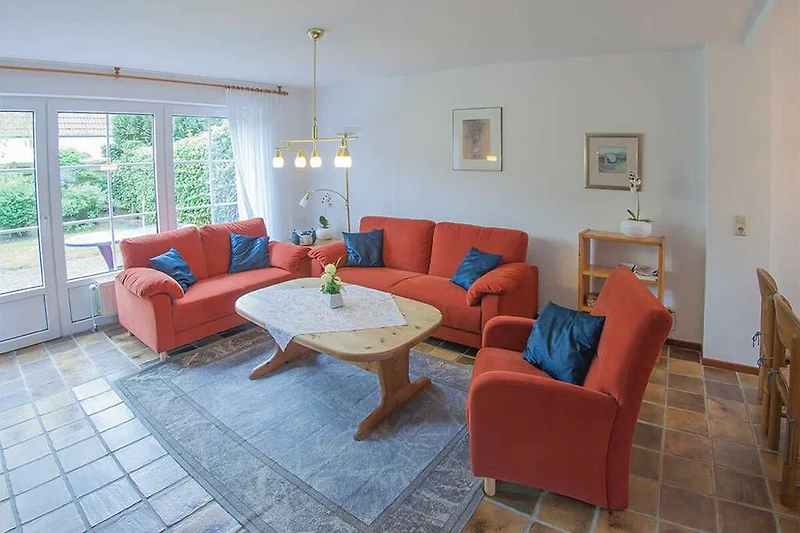 In der Dauenser Strasse in Dangast finden Sie unser hübsches Ferienhaus mit eigenem Stellplatz direkt gegenüber der Hausanlage. Im Dielenbereich befinden sich Garderobe und Gäste-WC. Weiter geradeaus gelangen Sie in den grosszügigen Wohn-Essbereich mit offener Küche und Ausgang zur sichtgeschützten Terrasse mit Rasenfläche in Südlage. Im ersten Obergeschoss liegen die beiden Schlafräume mit je einem Doppelbett und zwei Einzelbetten sowie ein Tageslicht-Duschbad mit Waschmaschine. Ihre Fahrräder können Sie abschliessbar unterstellen links vom Eingang in der Abseite.