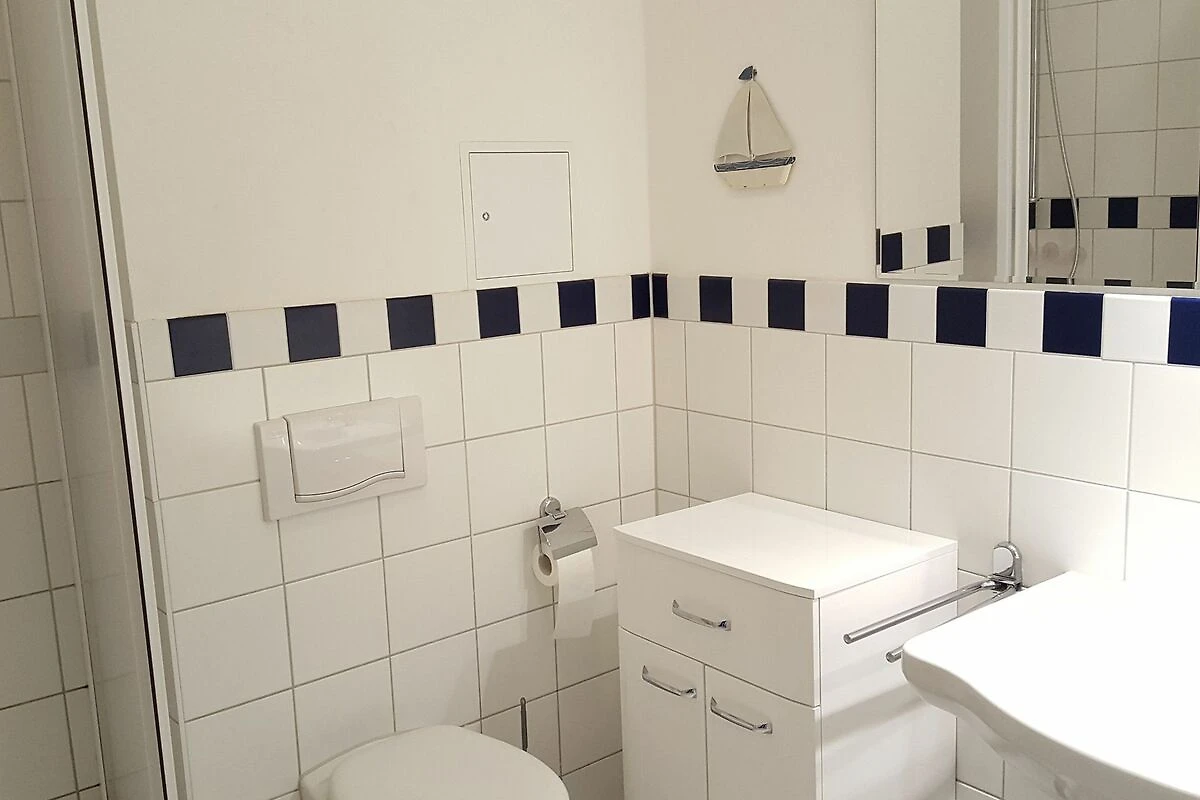 Im Schlafzimmer finden Sie ein Doppelbett. Ein Duschbad/WC ergänzt die Fewo.