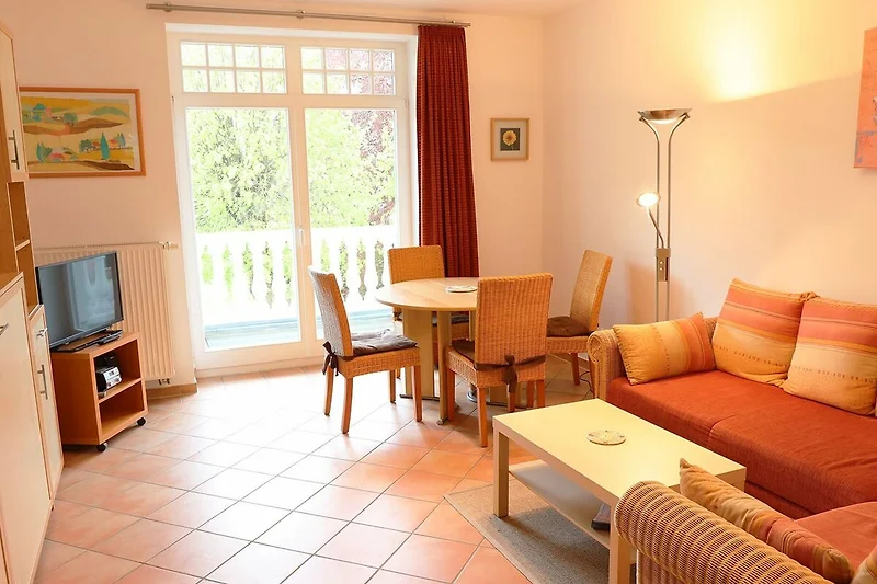 Die gemütliche, grosszügig geschnittene 2-Zimmer-Fewo befindet sich im 1.OG, ist ca. 56 m² gross und für bis zu 3 Personen eingerichtet.