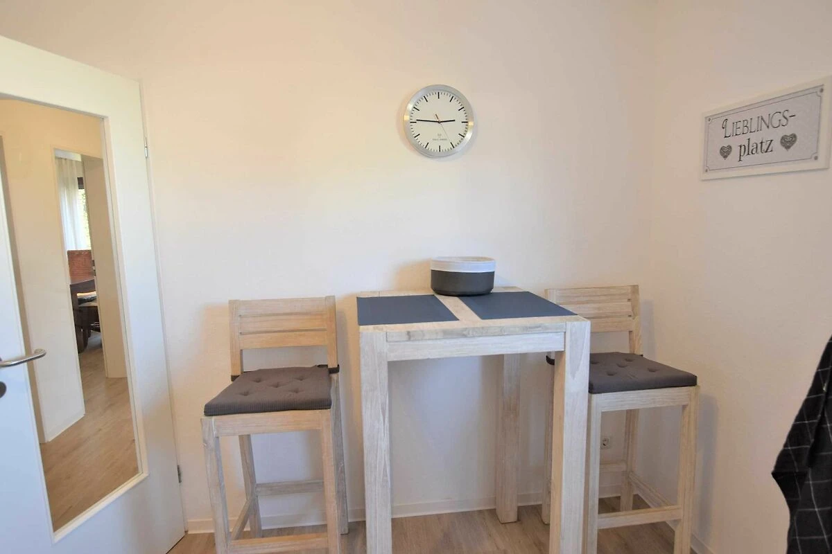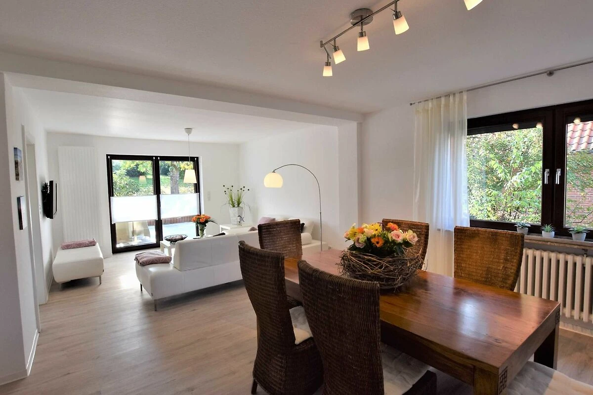 Die helle und frisch renovierte Ferienwohnung in Malente befindet sich im Erdgeschoss eines freistehenden Hauses in ruhiger Lage und in unmittelbarer Nähe zum Dieksee und diversen Kurkliniken.
