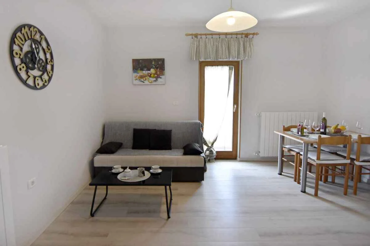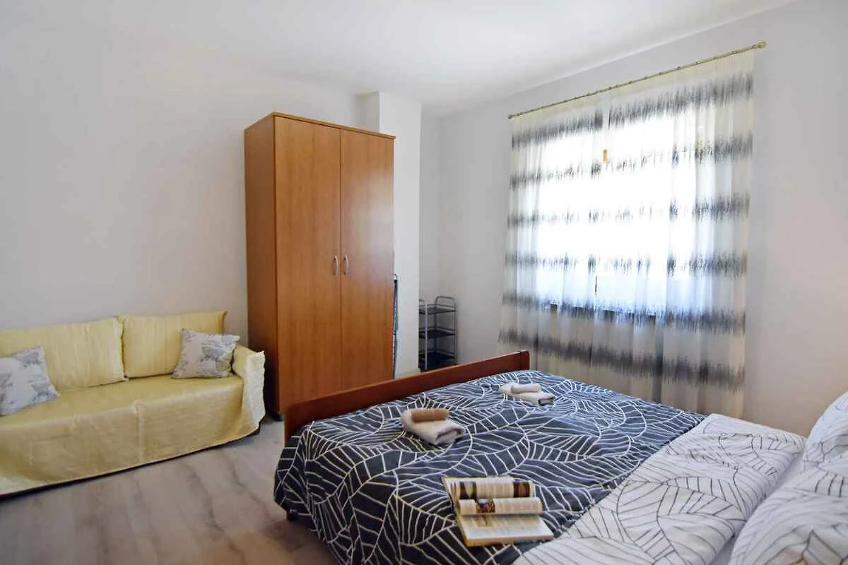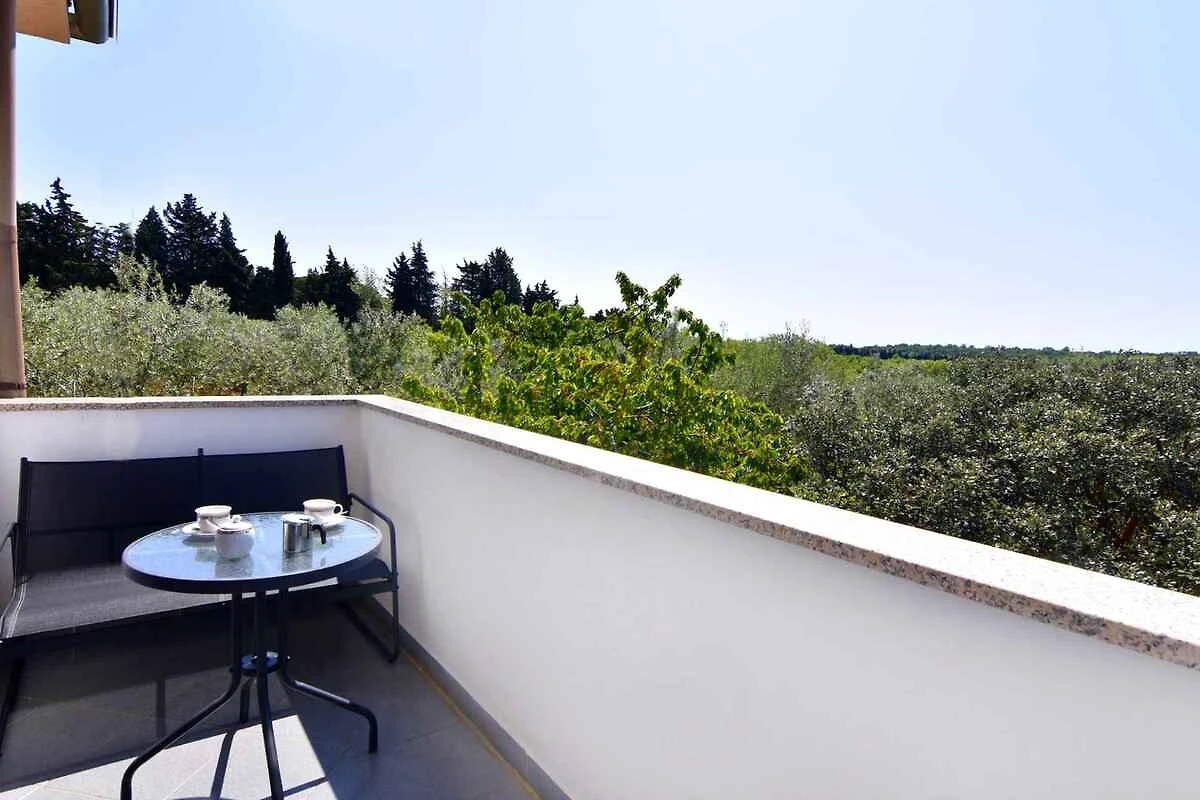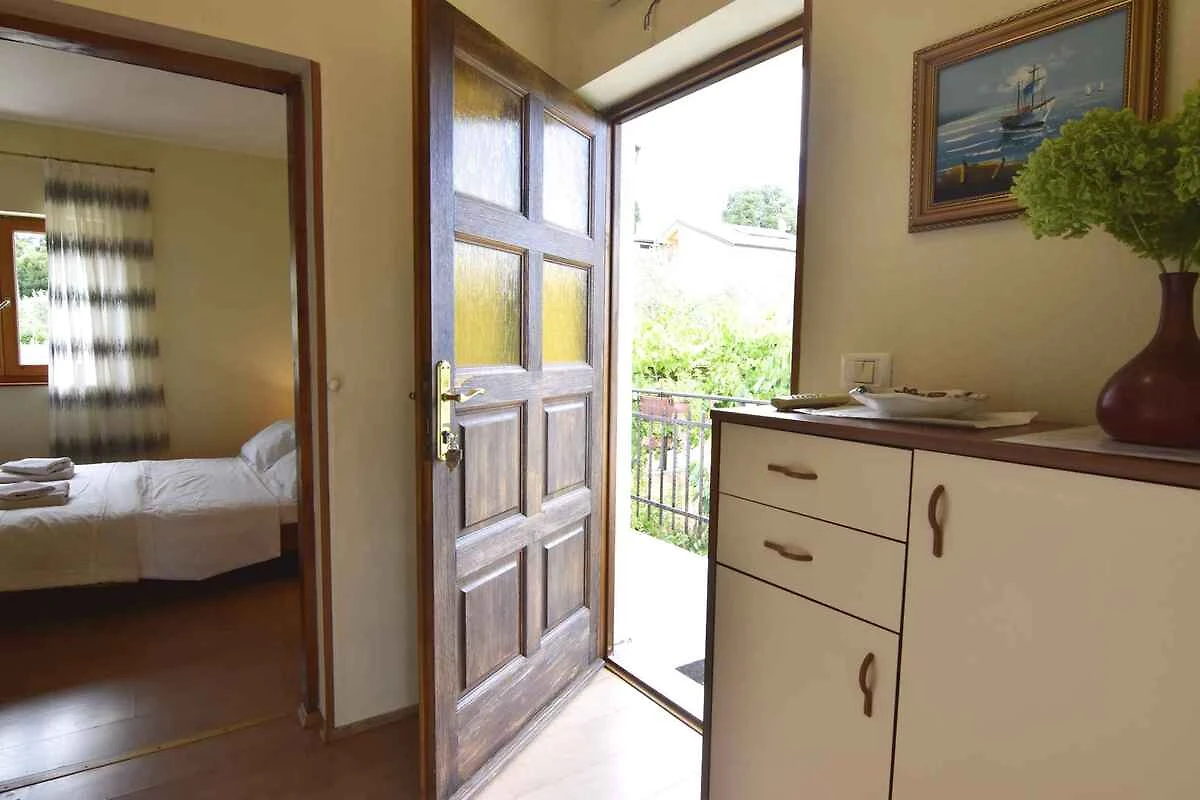 Savudrija, Ortsteil Savudrija. Die Ferienwohnung befindet sich auf einem Bauernhof, auf einem offenen Gartengrundstück mit Wiese, Blumen und Bäumen. Die Zufahrt erfolgt über einen Feld- oder Waldweg (asphaltiert). Parkplatz (für 1 Pkw) auf dem Grundstück und der Strasse vor dem Haus.