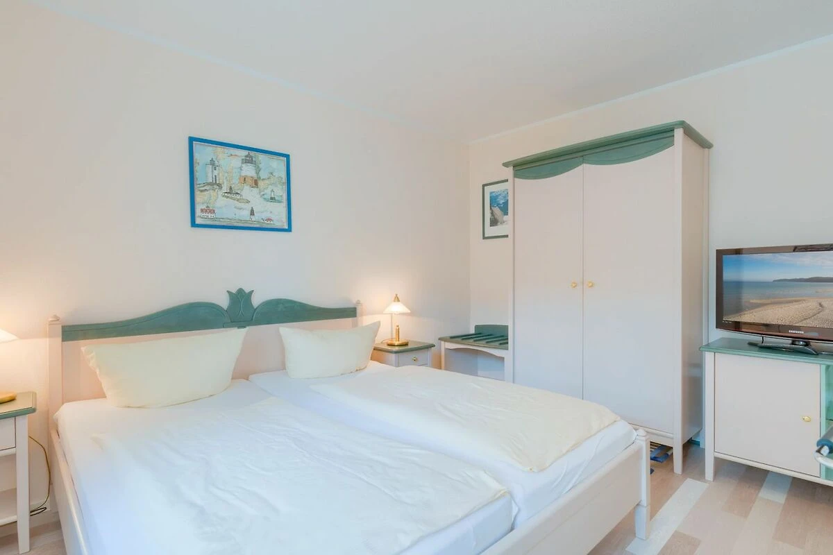 Im Schlafzimmer bietet Ihnen ein Doppelbett ausreichend Platz für einen erholsamen Schlaf. Ihre Urlaubskleidung können Sie im geräumigen Kleiderschrank unterbringen.