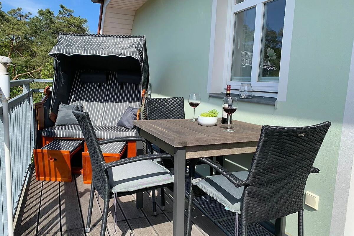 Der grosszügige Balkon ist neben Balkonmöbeln auch mit einem Strandkorb ausgestattet, in dem Sie sich wunderbar entspannen können. Das Mitbringen von Haustieren und das Rauchen in der Wohnung sind nicht gestattet. Ein kostenloser W-LAN Zugang steht Ihnen in der Wohnung zur Verfügung.