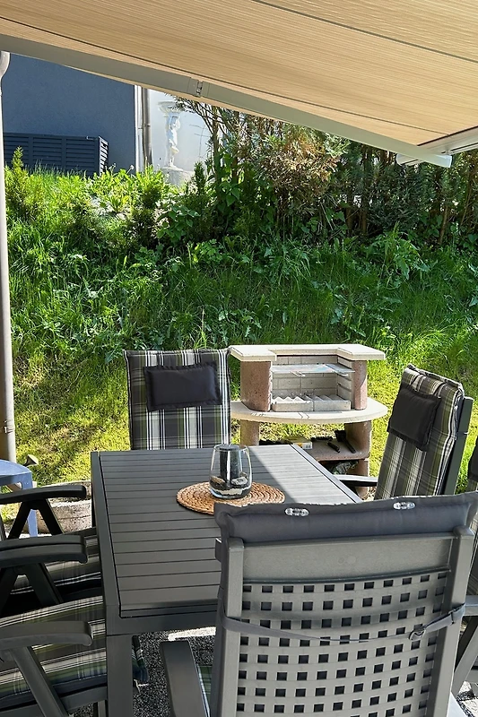 Das Haus ist von einem ca. 200 qm großen Garten umgeben. Die teilweise durch eine Markise überdachte Terrasse lädt zum Entspannen ein, am großen Tisch finden bis zu 6 Personen bequem Platz und die Grillbar lässt keine Wünsche offen. Ebenfalls stehen Ihnen 2 Sonnenliegen mit großem Sonnenschirm zur Verfügung. Von Ihren Sonnenliegen aus genießen Sie den unverbauten Blick über Wiesen und Wälder auf den Kathreinkogel und in der Ferne auf die Karawanken. Der abendliche Sonnenuntergang ist bei einem gemütlichen Glas Wein von der Terrasse aus zu genießen.