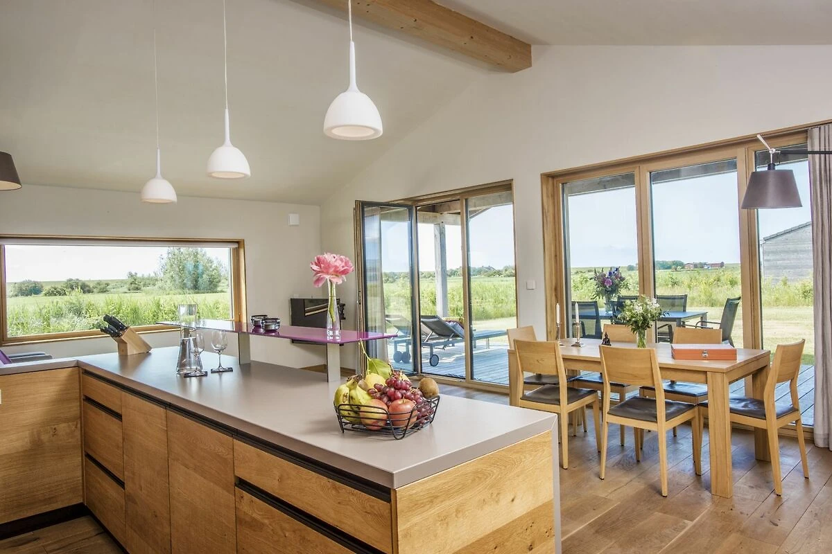 Ihre Mahlzeiten können Sie ganz in Ruhe auf einer der grossen Terrassenflächen (teilweise überdacht) einnehmen. Ein Terrassentisch und 6 Stühle sind dafür vorhanden. Zwei Liegen laden auf der Sonnenterrasse zum ausgiebigen Sonnenbaden ein. Der Garten bietet viel Erholungs- und Spielfläche. Auch in den kühleren Monaten ergänzen sich Natur und Haus perfekt. Machen Sie es sich nach ausgiebigen Deichwanderungen in frischer Meeresluft einfach mit einem guten Buch in der Sauna oder auf dem Sofa gemütlich oder geben Sie sich dem hin, was hier am besten funktioniert: dem gepflegten Nichtstun!