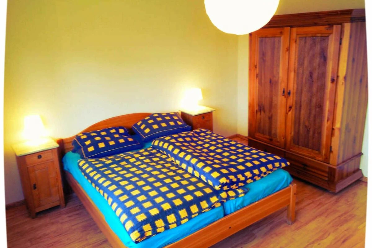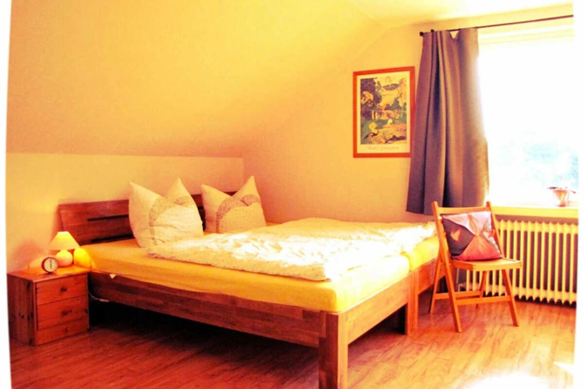 Alle unsere Zimmer sind hell und freundlich gestaltet und befinden sich in ruhiger Lage mit herrlichem Ausblick. Das Haus bietet viel Platz in drei Schlafzimmern, Kinderzimmer und einem geräumigen Wohnzimmer.In den modern eingerichteten Zimmern müssen Sie auf keinerlei Komfort verzichten. Bettwäsche und Handtücher können sie für 8,50 €/Person dazu buchen.