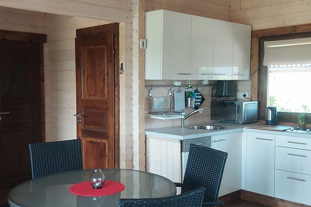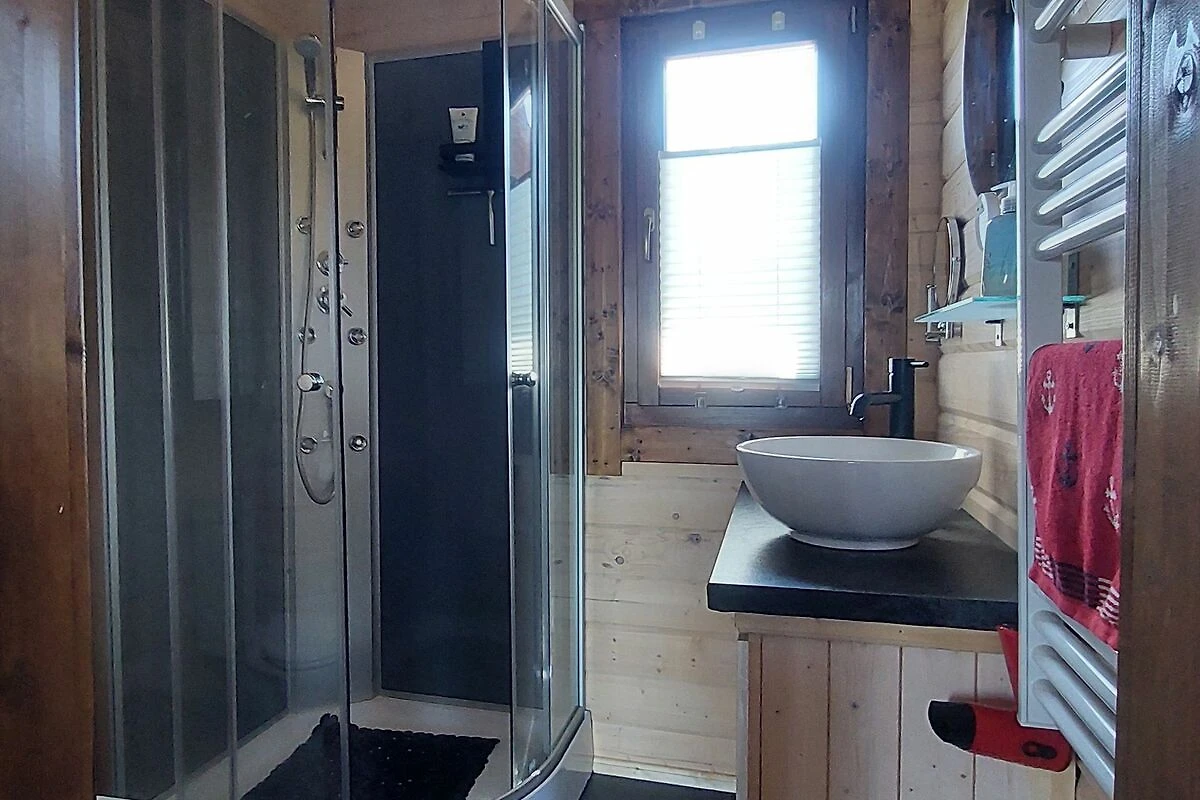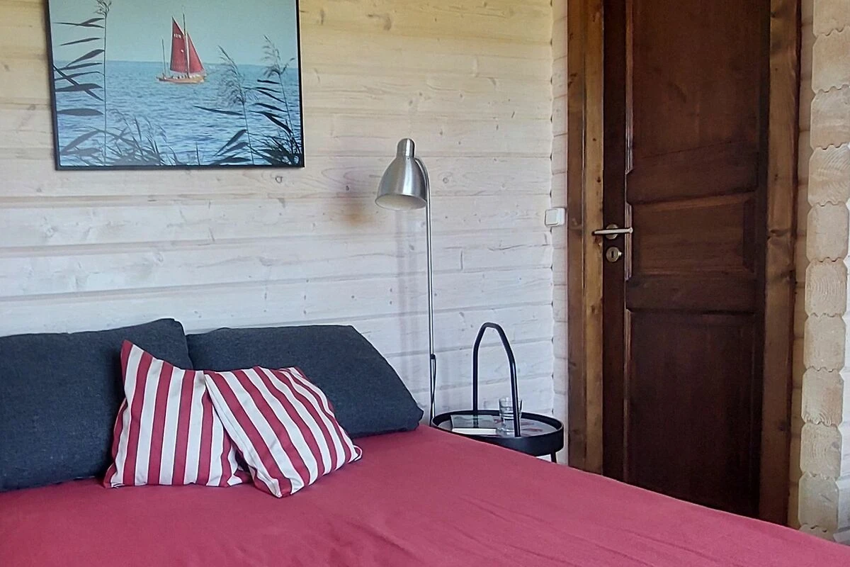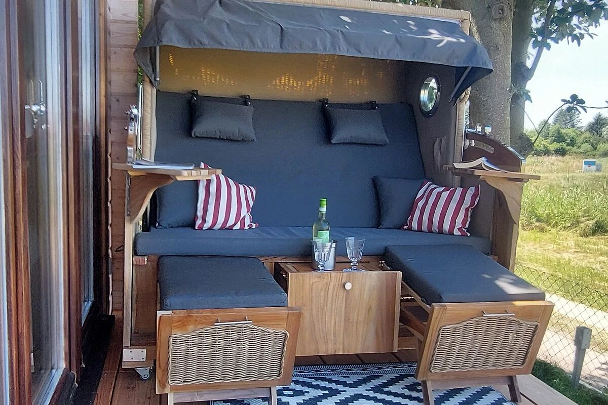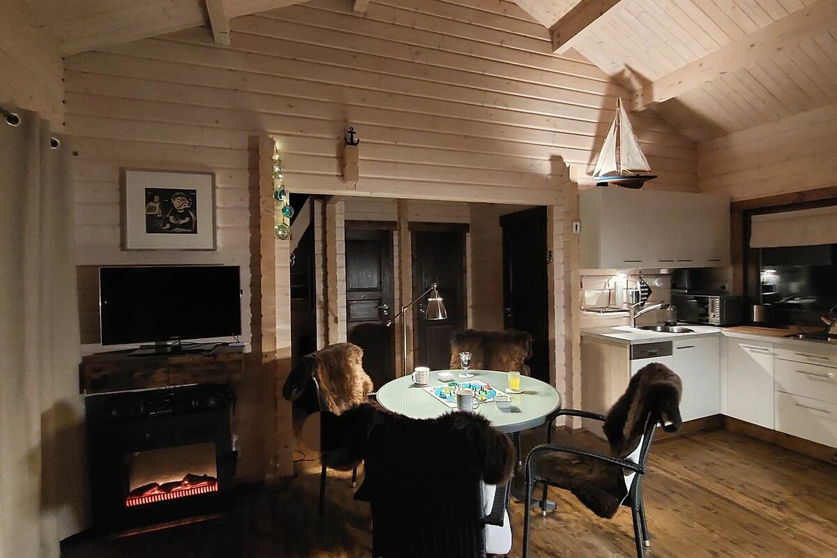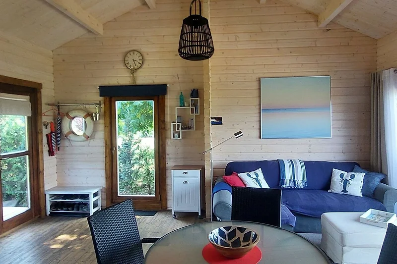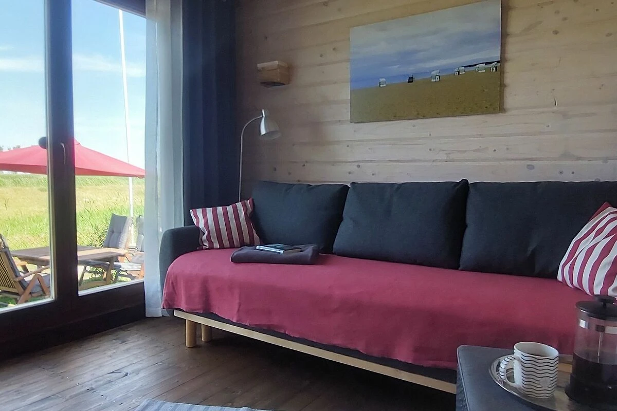 Das lichtdurchflutetet Blockhaus hat einen grosszügigen Wohnbereich mit Küchenecke. Das Schlafzimmer ist mit einer französische Liege ausgestattet. Das zweite Zimmer mit Blick zum Deich verfügt über ein Schlafsofa ebenfalls für 2 Personen. Das Badezimmer mit Fenster ist mit WC, Waschbecken und Dusche, sowie einem elektr. Handtuchwärmer & Fön ausgestattet.