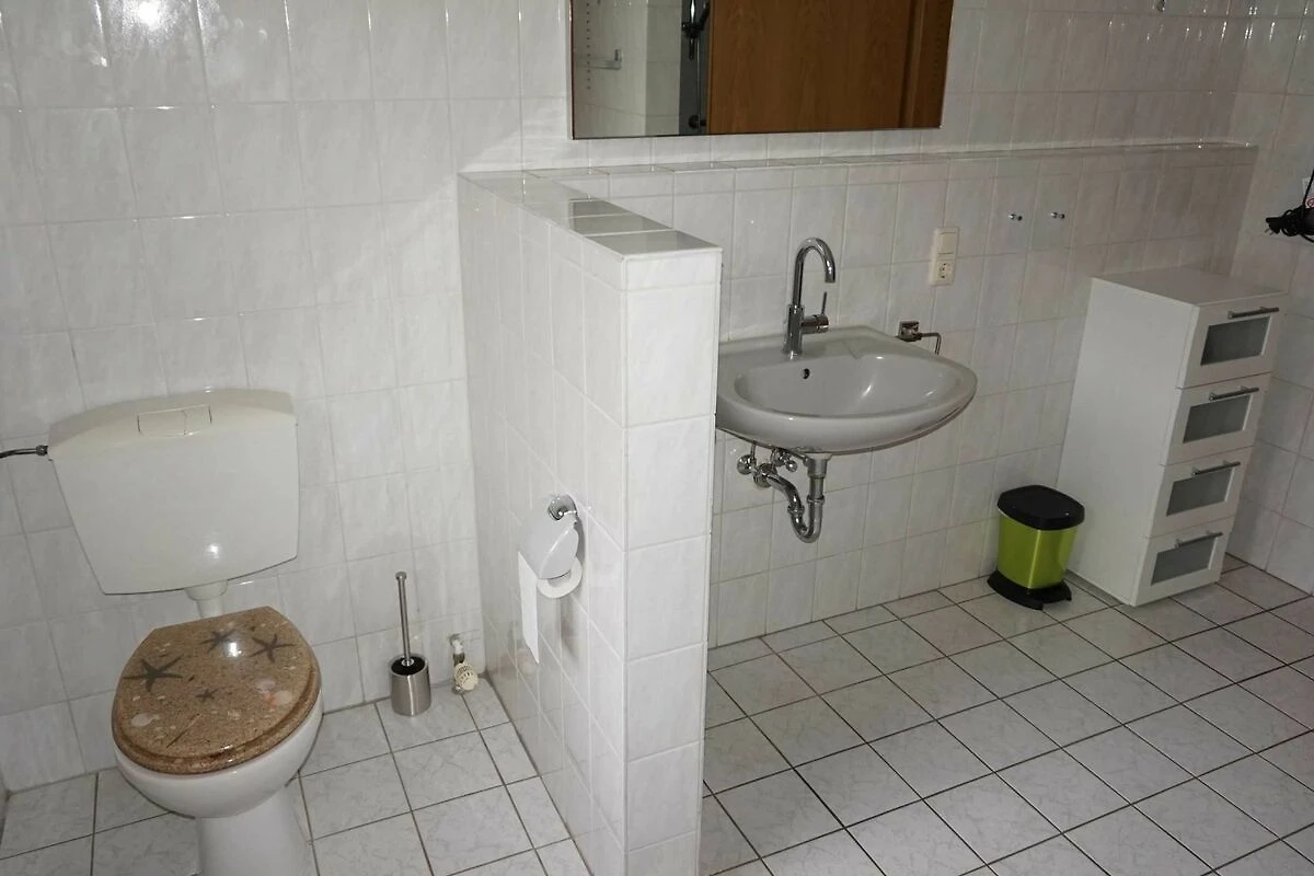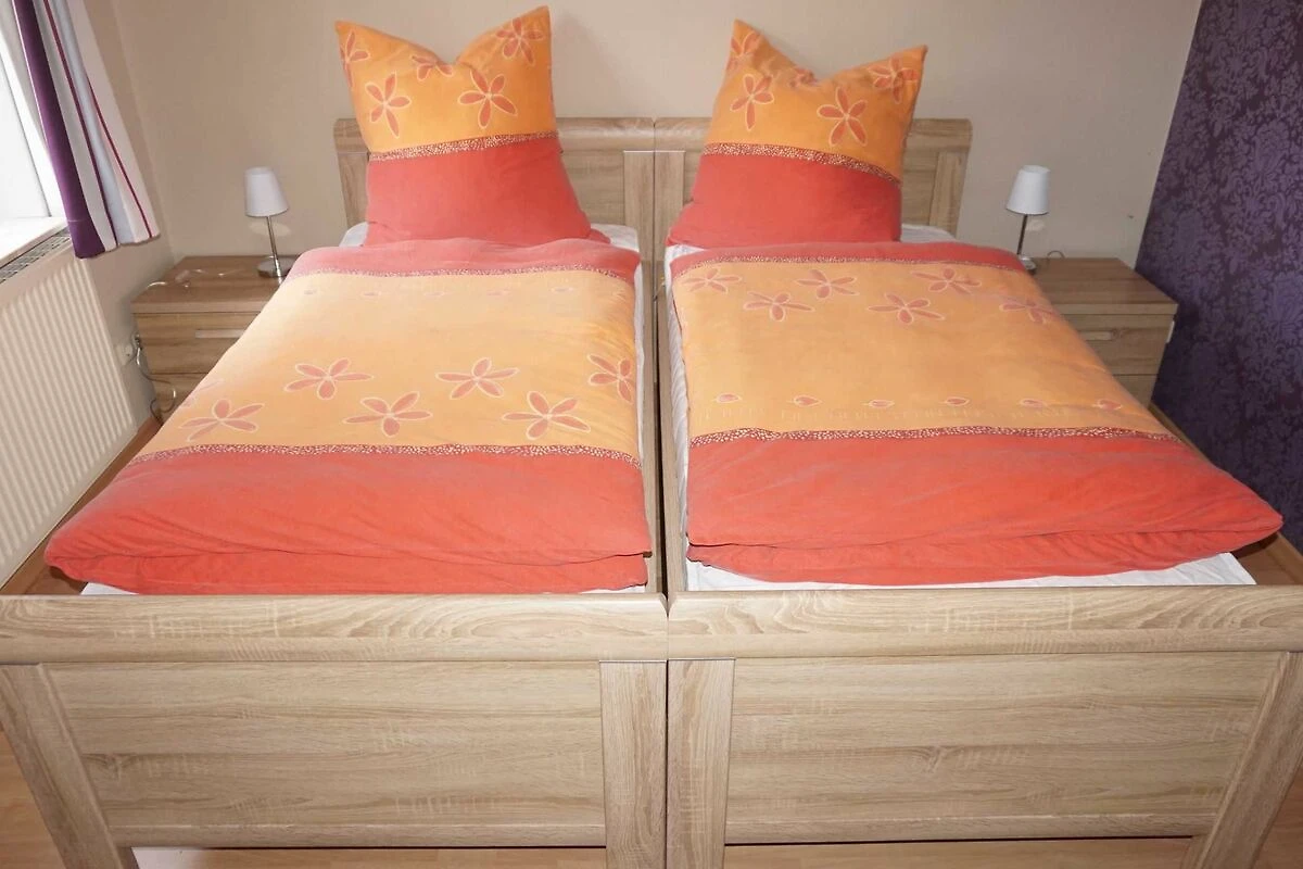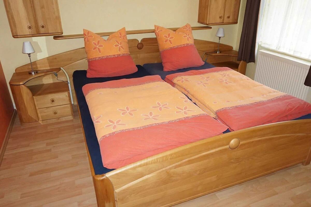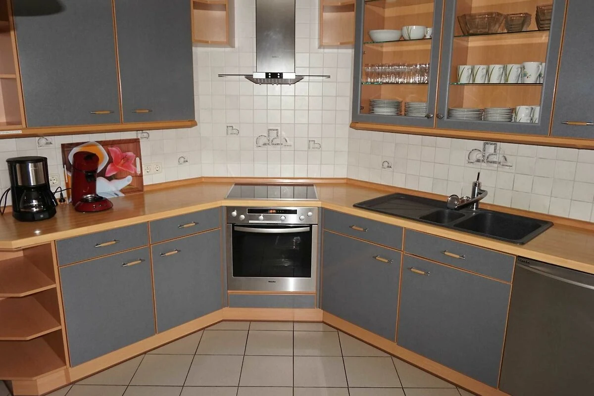 Komfort Ferienwohnung im Ergeschoss für 6 Personen und 1 Kleinkind. Grosszügige und komplett ausgestattete Küche mit Essplatz. 2 Schlafzimmer mit Doppelbett (davon 1 Schlafzimmer mit TV und erhöhten Betten), 1 Schlafzimmer mit Etagenbett. Wohnzimmer mit massiven Möbeln, Ledercouchgarnitur und grossem Sat-TV. Badezimmer mit Badewanne und Dusche/WC. Separates Gäste-WC. Die Garage wird als Abstellraum für Waschmaschine und Trockner (gegen Gebühr) sowie kann als Unterstellmöglichkeit für Fahrräder genutzt werden. Hier finder Sie auch eine gemeinschaftliche Gefrirrbox vor.