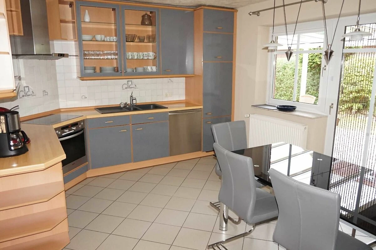 Vollmöbilierte überdachte Terrasse mit Grill und Strandkorb. Grosser Garten mit Brunnen. Haustiere sind erlaubt, Nichtraucherwohnung.