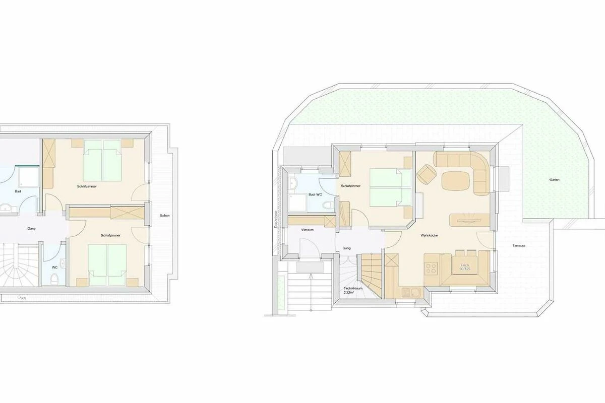 • 1 Schlafzimmer mit Doppelbett und Einzelbett im Obergeschoss