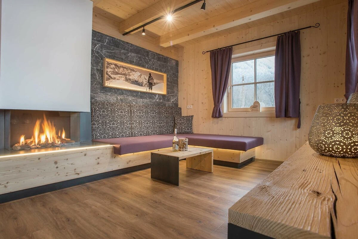 • Wohnbereich mit Feuerstelle und Schlafsofa für 1 weitere Person