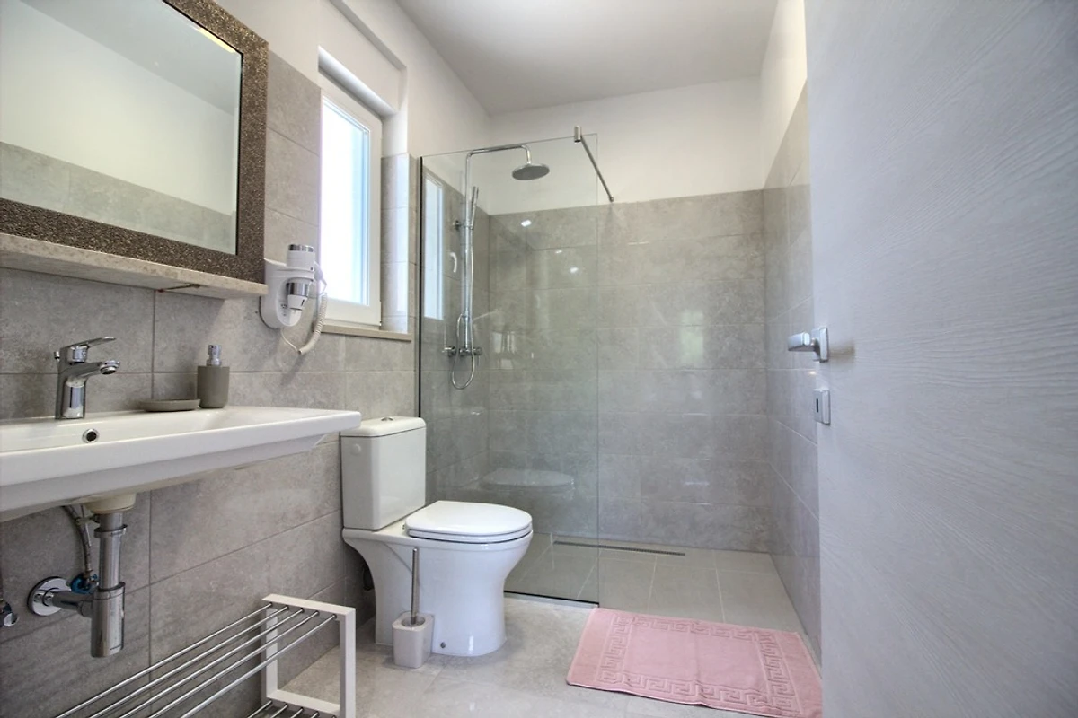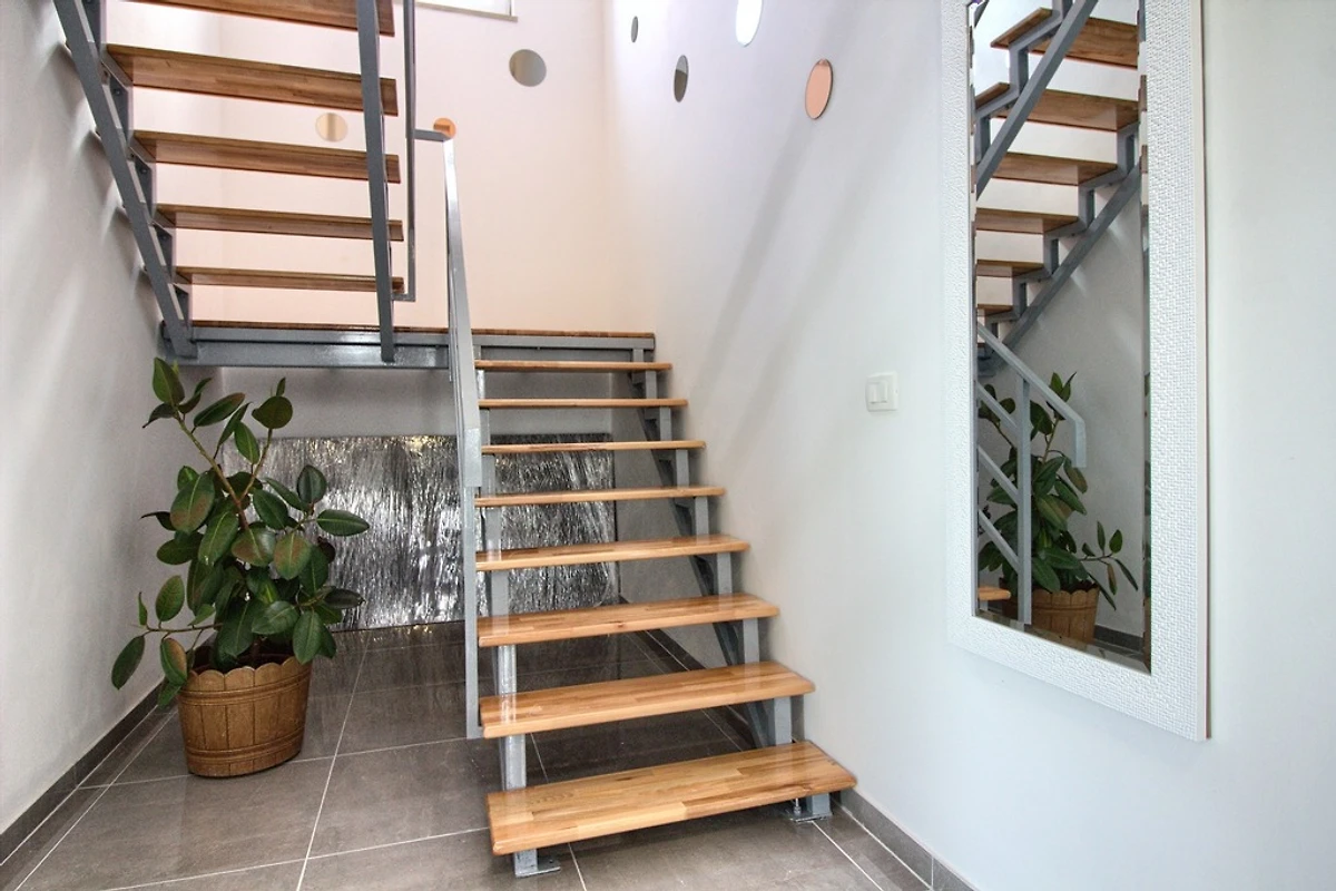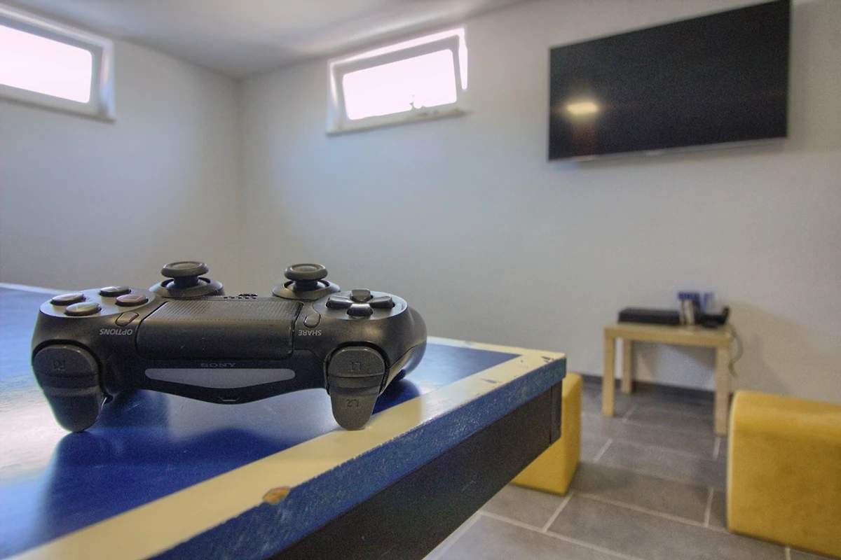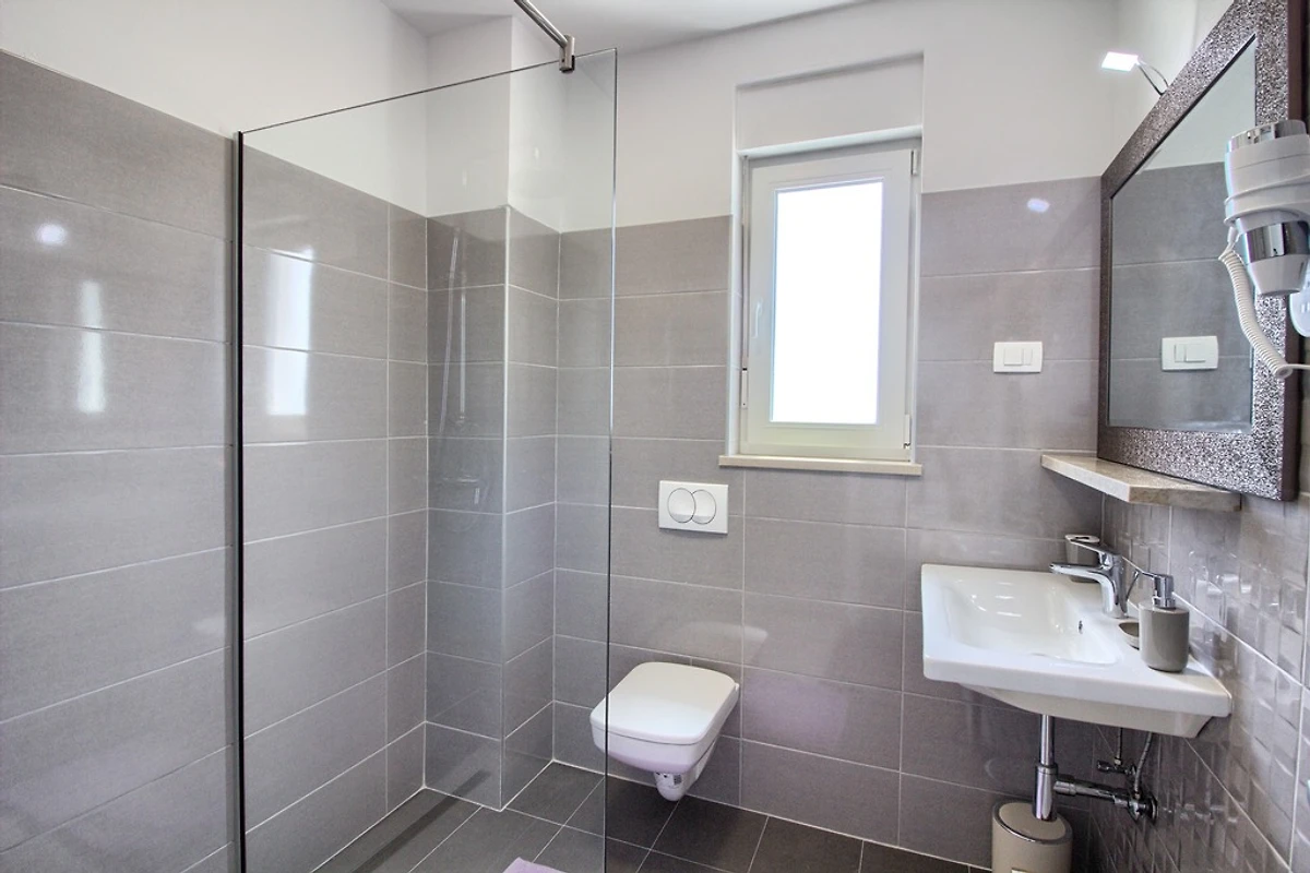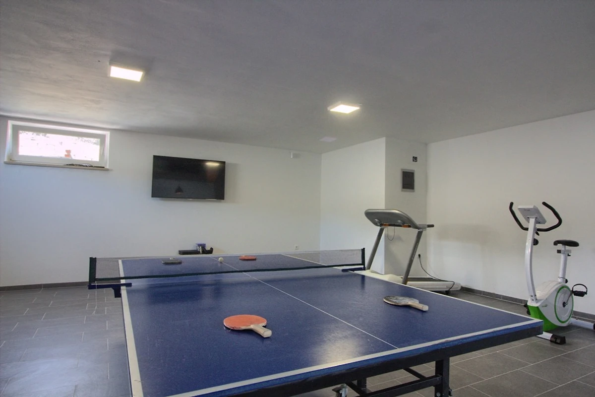 Dies ist eine wunderschöne Designer-Villa in Fazana, nur einen kurzen Spaziergang vom nächsten Strand entfernt. Die Villa Horizont wird all Ihre Wünsche bezüglich eines außergewöhnlichen Urlaubserholungsortes erfüllen! Die Villa befindet sich in einer ruhigen Gegend und wurde im Juli 2019 fertiggestellt. Um das Zentrum von Fazana, Geschäfte, Restaurants usw. zu erreichen, müssen Sie nicht das Auto benutzen, alles ist nur einen kurzen Spaziergang entfernt. Zu Ihrer Verfügung in der Villa haben Sie einen schönen Pool mit Meerblick, einen großen Garten mit Olivenbäumen und viel Platz zum Sonnenbaden. Für die Kleinsten gibt es auch ein Spielzimmer mit Billard, Fitnessraum, Dart, Tischfußball, Tischtennis und Playstation 4. Der Außenbereich, in dem Sie wahrscheinlich die meiste Zeit verbringen werden, hat auch einen Holzkohlegrill und einen überdachten Essbereich mit Meerblick . Dort können sich alle versammeln und Mahlzeiten im Freien genießen. Die Balkone in der oberen Etage bieten einen schönen Blick auf das Meer und die Brijuni-Inseln und sind der perfekte Ort für einen abendlichen Drink. Der Innenraum ist geschmackvoll in einem modernen und sauberen Stil eingerichtet und in zwei Etagen unterteilt. Das Erdgeschoss besteht aus einem geräumigen Wohnzimmer, einer voll ausgestatteten Küche mit Essbereich und einem Schlafzimmer mit Bad. Die restlichen drei Schlafzimmer verteilen sich auf die obere Etage und verfügen jeweils über ein Doppelbett, ein eigenes Bad, einen Balkon mit Meerblick, einen Flachbild-TV und eine Klimaanlage. Das Grundstück ist komplett eingezäunt, bietet einen großen privaten Parkplatz