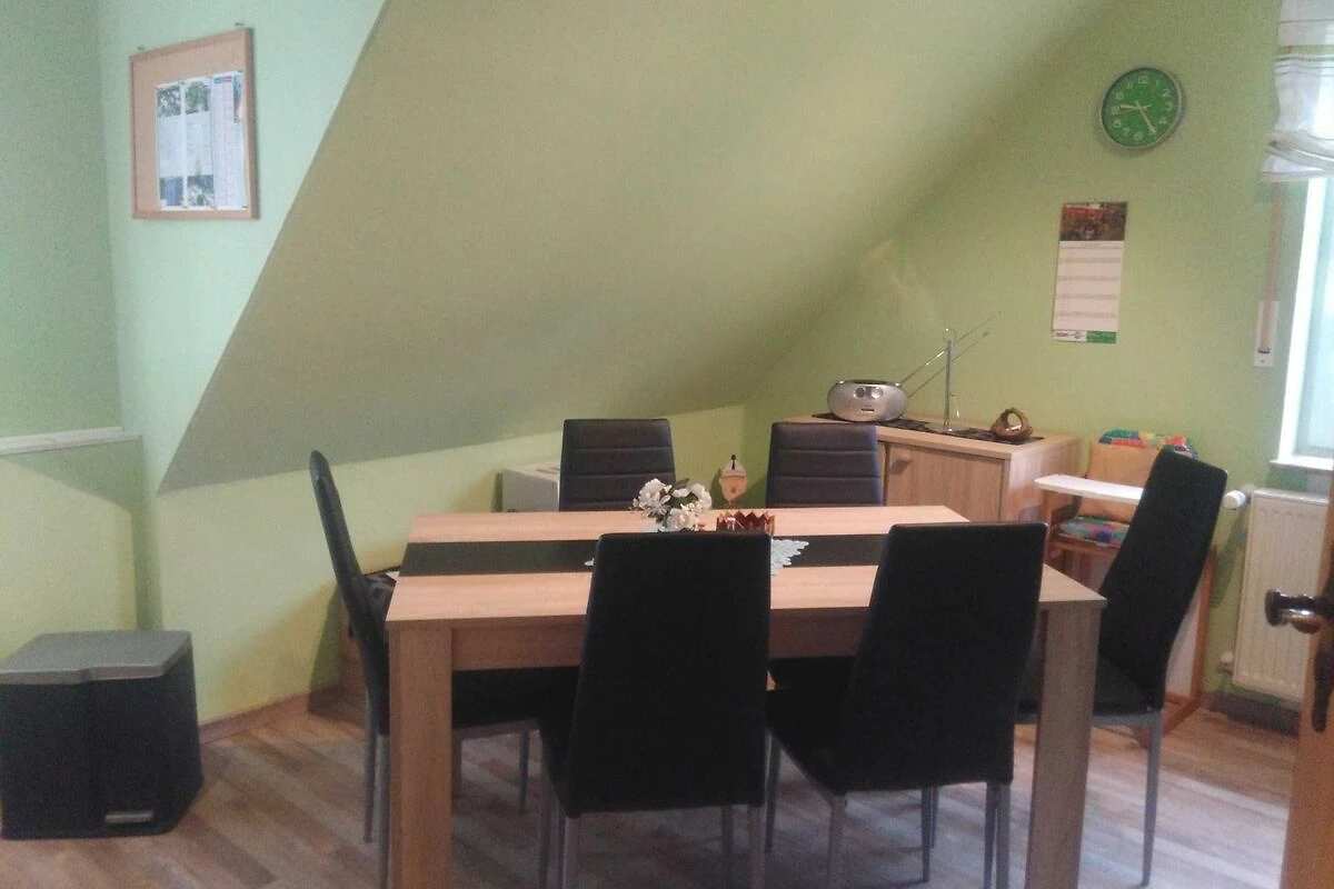 Wir wohnen in Carolinensiel im Mühlenblick, etwa 5 Min. vom Ortskern oder der Wellnessoase Cliner Quelle. Ruhige Sackgassenlage ohne Durchgangsverkehr. Nordseestrand und Hafen, wo auch das Freibad ist, erreicht man in wenigen Minuten, Nichtraucherwohnung für vier Personen im Obergeschoss unseres Einfamilienhauses. PKW-Stellplatz und Unterstellmöglichkeit für Fahrräder am Haus. Garten mit eigener Terrasse lädt zum Grillen und Faulenzen ein. Eigene Gartenmöbel.