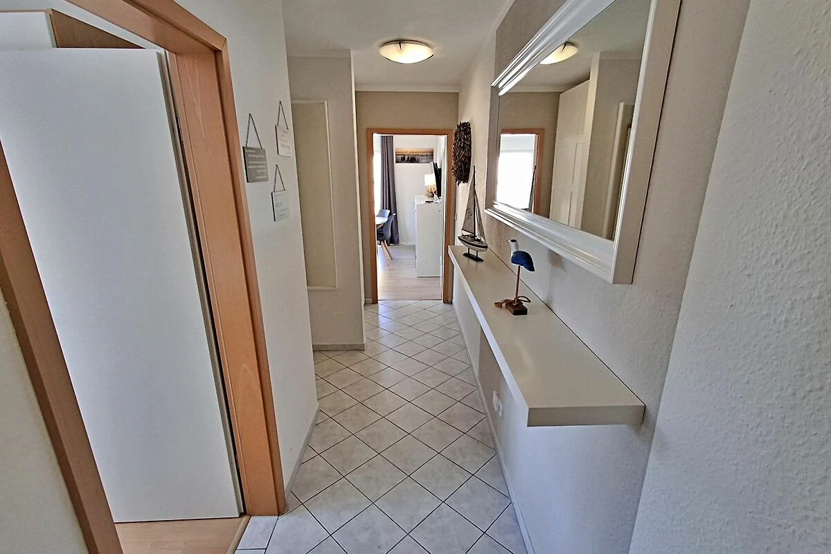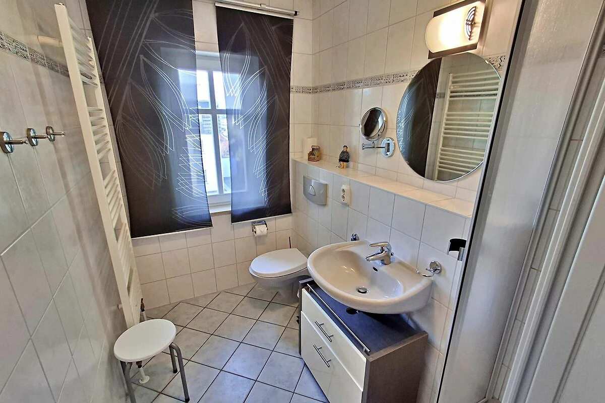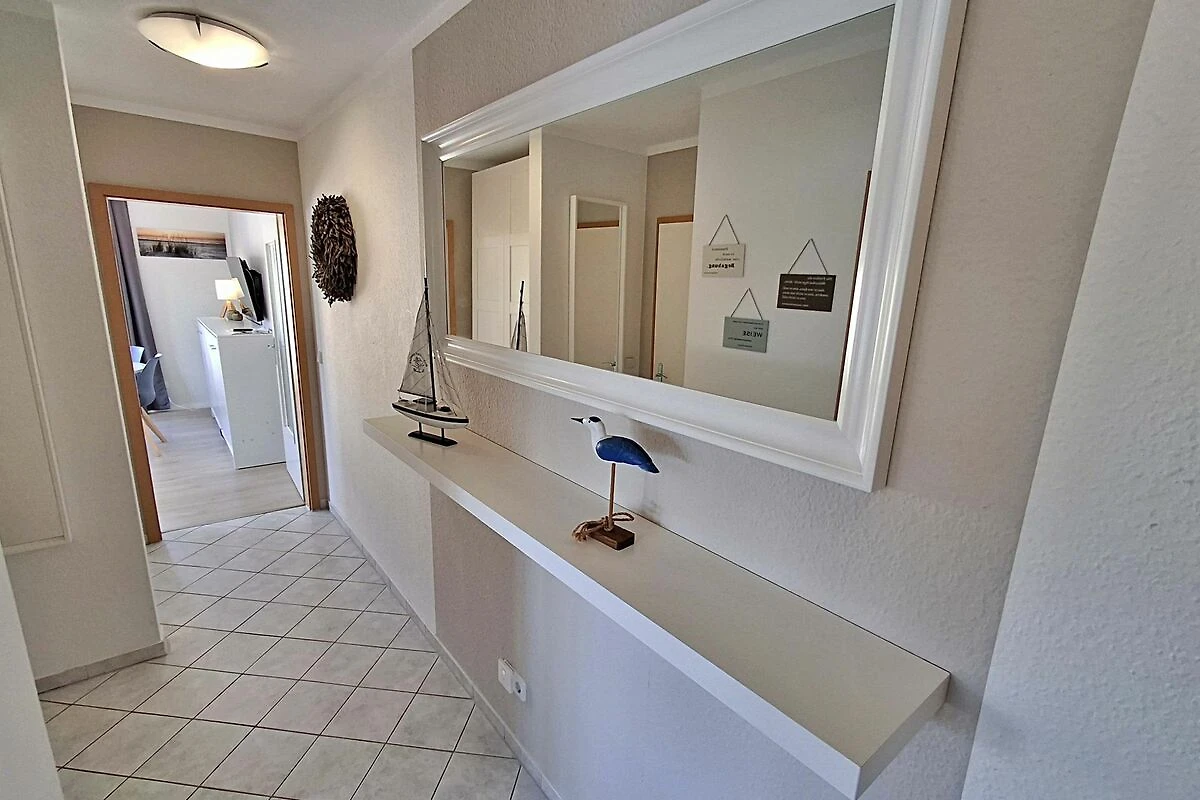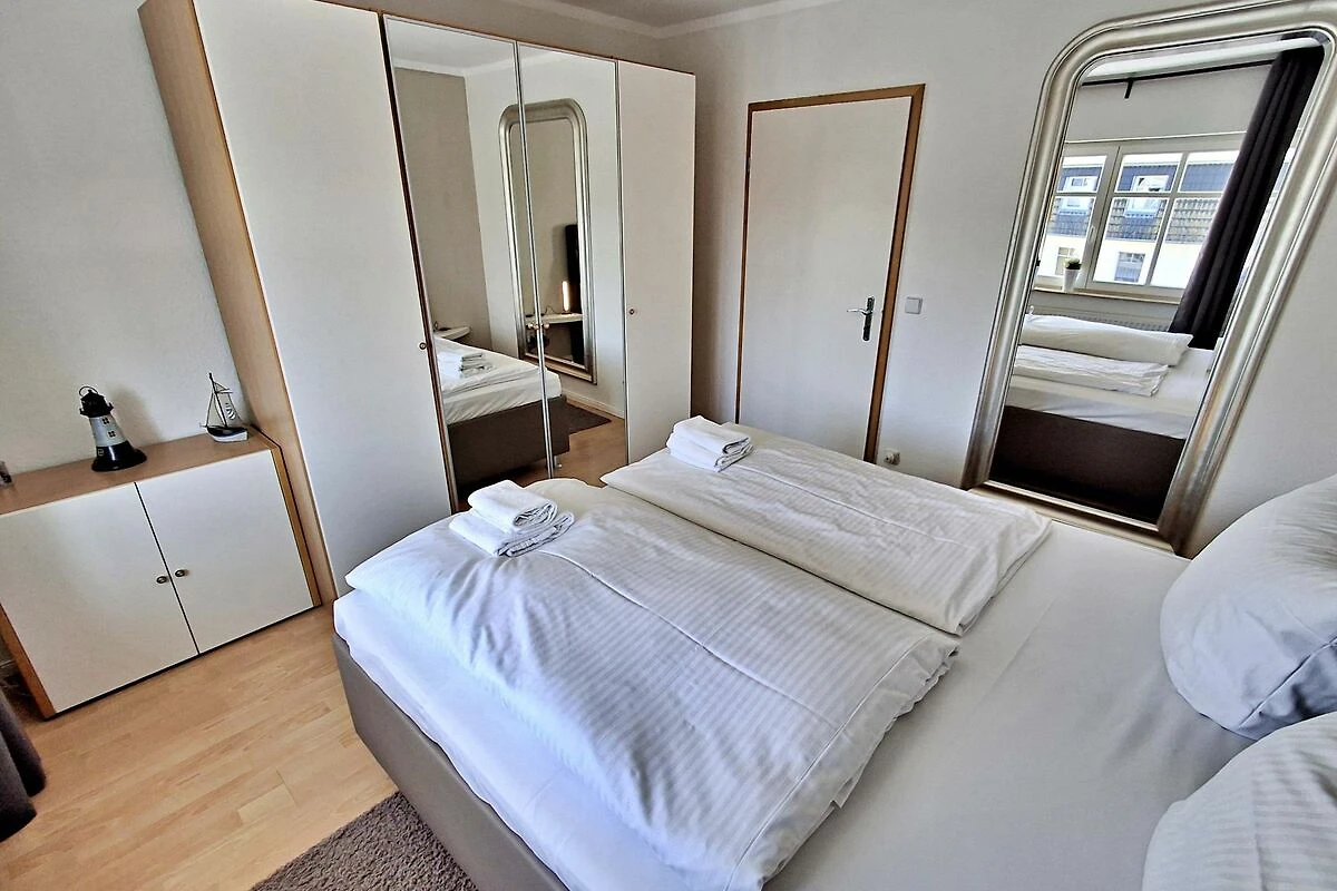 Herzlich willkommen in der hellen und freundlichen Ferienwohnung in der zweiten Etage des Feriendomizils Goethestrasse! Auf 48 qm bietet diese schöne Wohnung Platz für bis zu 4 Personen, damit Sie einen erholsamen und entspannten Urlaub geniessen können. Die stilvoll eingerichtete Wohnung verfügt über ein einladendes Wohn- und Esszimmer, das mit einer bequemen Couch ausgestattet ist, die auch Platz für 2 weitere Personen bietet. Hier finden Sie auch einen Flachbild-TV und einen Esstisch mit 4 Stühlen. In der vollwertigen Küche stehen Ihnen ein 4-Platten-Herd, Backofen, Spülmaschine, Wasserkocher und Kaffeemaschine zur Verfügung - alles, was Sie für die Zubereitung Ihrer Lieblingsgerichte benötigen! Das separate Schlafzimmer ist mit einem gemütlichen Doppelbett, einem grosszügigen Kleiderschrank und einem zusätzlichen Flachbild-TV ausgestattet, sodass Sie sich auch hier wohlfühlen können. Das Tageslicht-Bad bietet Ihnen eine Dusche und WC für Ihren Komfort. Geniessen Sie die frische Ostseeluft auf unserem kleinen Balkon, der mit zwei Sitzmöglichkeiten ausgestattet ist - perfekt, um sich zu jeder Tageszeit zu entspannen. Zudem stehen Ihnen W-LAN und ein Parkplatz direkt hinter dem Haus kostenfrei zur Verfügung.