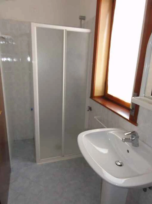 Der Eingang in Ihre Ferienwohnung führt direkt in das Wohnzimmer. Wohnzimmer mit 2 Zusatzbetten auf Couch/Sofa, TV, Essecke (7 Plätze) und Zugang zum Balkon (Gartenmöbel, 1 Tisch, 4 Stühle). Schlafzimmer mit 2 Einzelbetten. Schlafzimmer mit 1 Doppelbett und 1 Einzelbett. Kochecke mit Gasherd (4 Flammen), Kühlschrank (Eisfach) und Mikrowelle. Bad (nicht beheizbar) mit Dusche, 1 Waschbecken, WC, Bidet und Fenster.