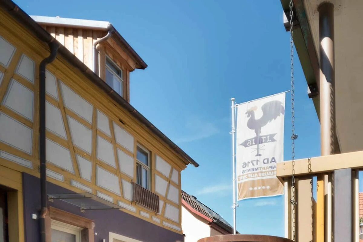 Wohnen wie Zuhause – auf Zeit. Das Anno Domini 1716 selbst besteht aus 2 Gebäudeensembles – der Hofstallung, einer über 300 Jahren alten Fachwerk-Scheune und dem Herrenhaus mit markanter Fachwerkgestaltung. Beide wurden Anfang 2018 von uns erworben und in aufwändiger Bauweise auf den modernsten Stand gebracht. Das Anwesen wurde komplett entkernt, die Fachwerke instandbesetzt und unter Verwendung ausschliesslich baubiologisch ausgesuchter und naturbelassener Werkstoffe insgesamt 10 perfekt zugeschnittene, klimatechnische Wohlfühl-Einheiten hergerichtet. Die Aussenfassade wurde erhalten, einschliesslich der Holz-Lehm-Gefache und des dahinter liegenden Mauerwerks aus Naturziegeln. Innen wurde mit einem rein natürlichen Dämmputz und ebensolchen Dämmmaterialien für ein perfektes Klima gesorgt, der Ausbau selbst erfolgte mit Kalksandstein und in Holz-Bauweise. Die Apartments selbst sind perfekt für Selbstversorger ausgestattet mit kuscheligem. komfortablen und allergikergeeignetem Doppelbett, geräumiger Dusche/WC, vollständiger Pantryküche, W-Lan und TV/Radio und teils mit grossem Balkon. Der Innenhof bietet Unterstell-Möglichkeiten für Fahrräder, Fahrzeuge können in der 3 Minuten entfernten, rund um die Uhr überwachten Tiefgarage abgestellt werden. In der Wagnergasse selbst gibt es ausschliesslich Anliegerverkehr, was eine unvergleichlich angenehme Ruhe inmitten der Innenstadt garantiert.