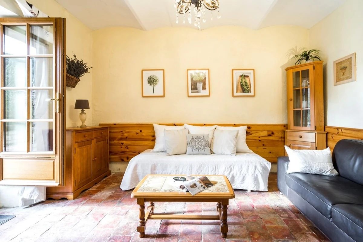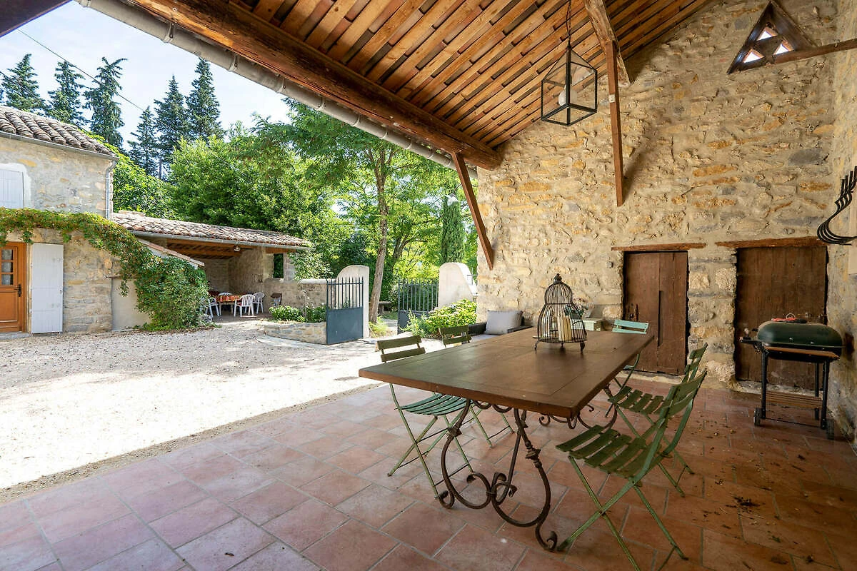 Dieses sehr komfortable Ferienhaus bietet eine reizvolle halb überdachte Südterrasse mit einem herrlichen Blick über die Weinfelder und die Hügel in der Umgebung. Es liegt in einem der zwei Flügel der "Mas". Am Abend zaubert die gut erleuchtete Terrasse eine besondere romantische Atmosphäre. Wenn es sehr sonnig ist, bietet sie einen angenehm schattigen Platz, wo Sie ein Glas Wein aus der Region genießen können. Im Falle eines gelegentlichen Schauers ist sie ein perfekter Schutz,um trotzdem das Leben draußen genießen zu können. Und die Stille! Hören Sie den Zikaden zu, die Sie mit ihrem Gesang begrüßen. Welch ein Glück! Eine angenehme Unterkunft mir hohen Ansprüchen und dem herzlichem Charakter der Provence.