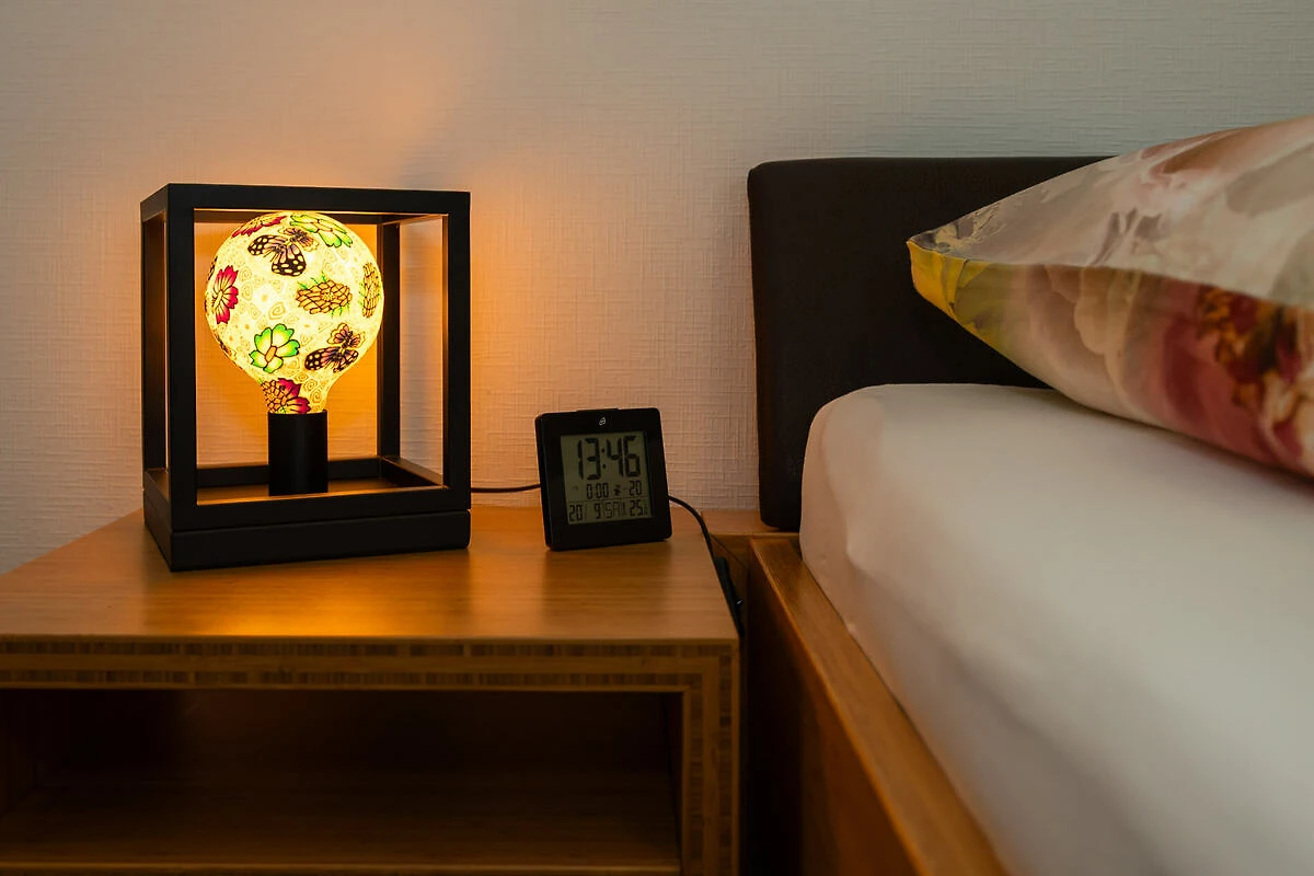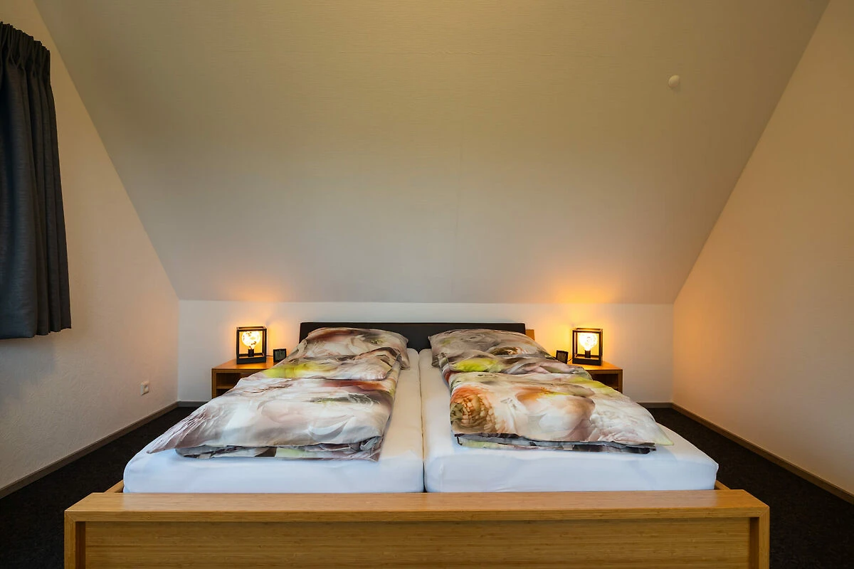 Gemütliche Schlafräume: In unseren liebevoll gestalteten Schlafräumen erwarten Sie Naturholzmöbel und ein kuscheliger Tretford-Teppich, der für ein angenehmes Raumklima sorgt und einem Allergiker-Ferienhaus gerecht wird.