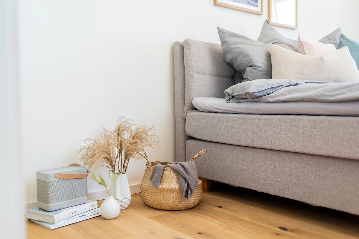 In der Ferienwohnung finden Sie zwei Schlafräume, welche jeweils mit einem Boxspringbett (es werden grosse Bettlaken 180 x 200 cm benötigt!) ausgestattet sind.