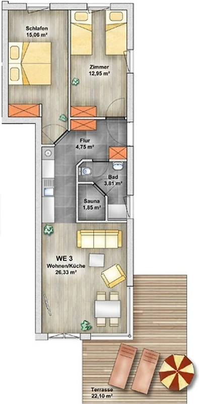 Die ca. 76 qm grosse Ferienwohnung bietet für maximal 4 Personen Platz und ist für eine Familie ideal geeignet.