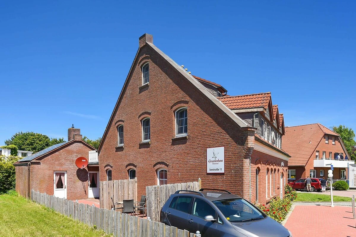 Das „Gezeitenhaus“ liegt mitten in Bensersiel und fast direkt hinter dem Deich.