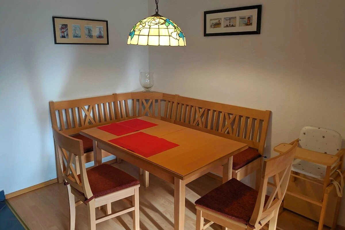 Ferienwohnung in Friedrichskoog-Spitze ca. 100m vom Nordseedeich entfernt. Die 2-Raumferienwohnung befindet sich im 1. OG, maxi. für 3 Personen und einem Kleinkind bis 2 Jahre (Kinderreisebett und Hochstuhl sind vorhanden). Kombi. Wohn-/Esszimmer mit Küchenzeile. Die Küche ist komplett ausgestattet mit Geschirrspüler. Sep. Schlafzimmer mit zwei getrennt stehenden Betten (erhöhte Betten). Balkon mit Gartenmöbel. Modernes Badezimmer mit grosser Dusche die fast ebenerdig ist. Waschmaschine befindet sich im Badezimmer. Die Ferienwohnung ist mit Laminatboden ausgelegt. Haustiere sind nicht erlaubt!